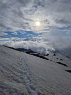 Am anfang rundum die 0° bodentemperatur. Die Gletscher-/ Schnee verhältnisse waren stabil. In Verlauf des Tages mehr Sulz. Viel Nebel und wind