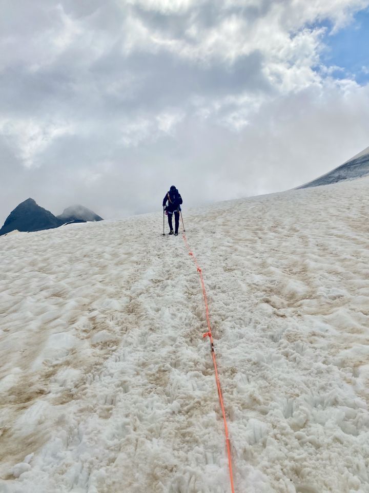 Zur Zeit optimale Verhältnisse. Der Gletscher hat noch eine massive Schneedecke für Ende Juli, sodass der Auf- / Abstieg sehr angenehm und schnell machbar ist.