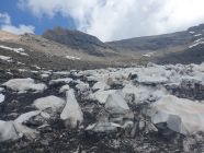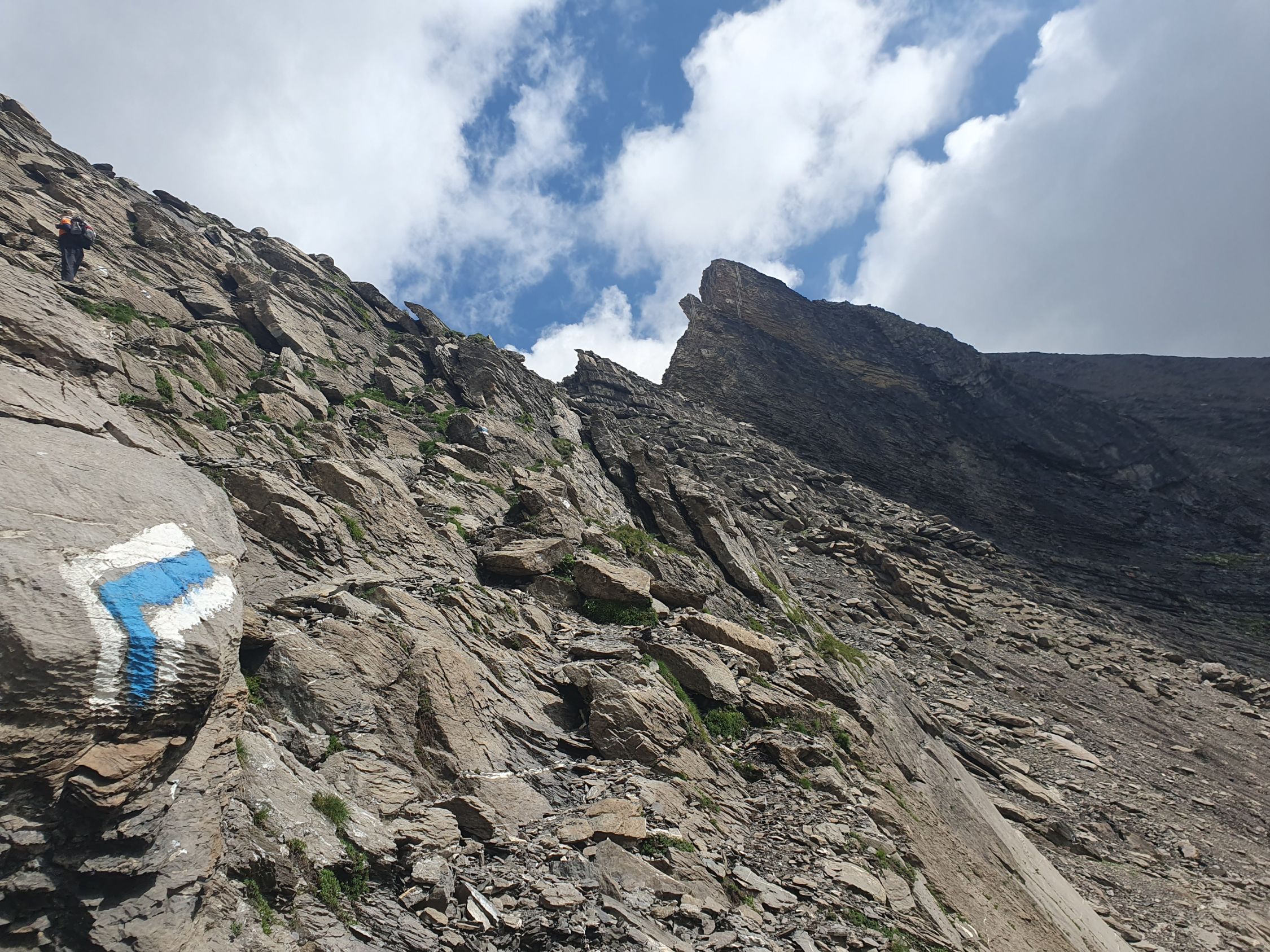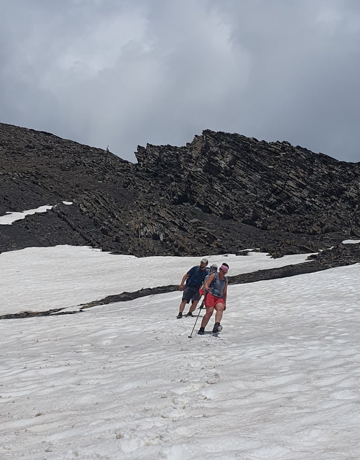 Beim Zustieg müssen Schneefelder gequert werden. Ebenso beim Abstieg. Jedoch guter Trittschnee und mit Bergschuhen kein Problem. Stöcke helfen.