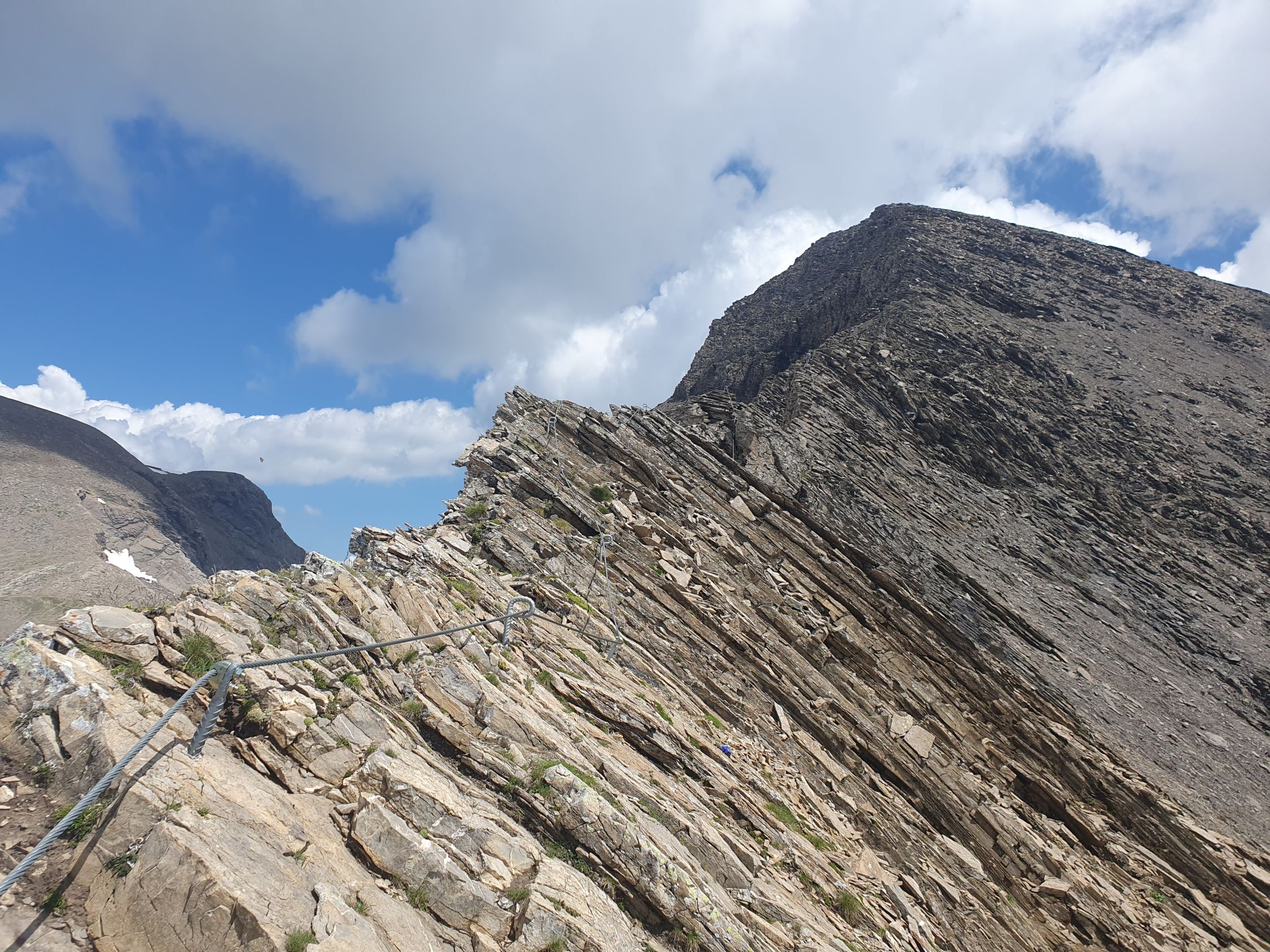 Klettersteig trocken und schneefrei. Der Steig ist sehr gut abgesichert. Wenn man die Leitern-Sektionen weglässt, ists eigentlich eine schöne T4/T5-Kraxeltour.