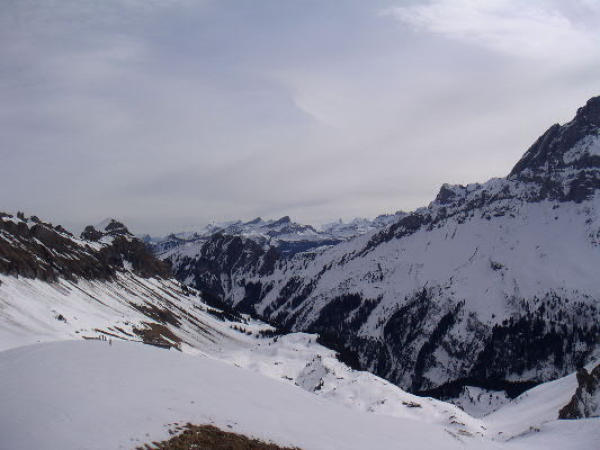 Oben windgepresster Pulver mit schönen Pulverschneeflächen, dann tragender Harsch und weiter unten Sulz, prima fahrbar. Auf der Abfahrt nach Oberrickenbach ab ca. P. 1600 total durchnässter Schnee, praktisch nicht mehr fahrbar.Zu warm, es war auf 2000m 6-7 Grad +.