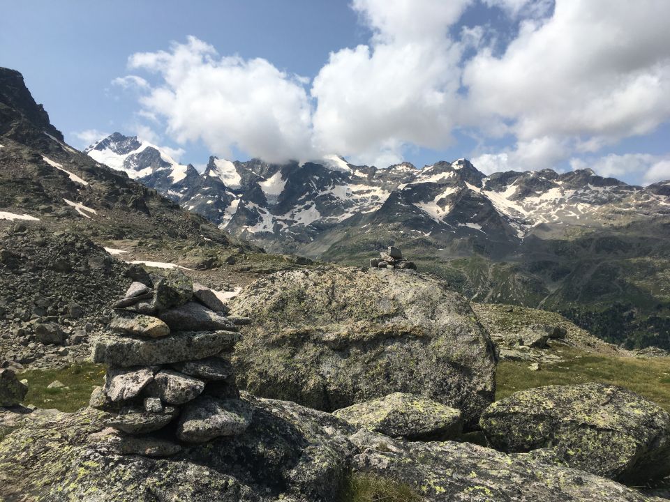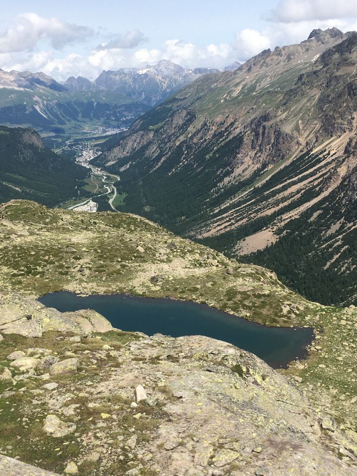 Alpine Tour mit Klettereinlage auf den schönen Aussichtspunkt oberhalb Lej Pers, T4+. Start Parkplatz Diavolezza 9.30 Uhr, 14 Grad, leichter Nordwind (keine öffentlichen PP bei Bernina Suot). Den schönen Wanderweg hoch mit vielen schönen Arven hoch bis Höhe 2500 m. Nun weglos die Nordostflanke hoch, kurz vor Gipfel den steilen Kamin hoch klettern (2. Grad, ausgesetzt), und unschwierig zum höchsten Punkt 2651. Tolle Aussicht in die Bernina Riesen. Abstieg weglos zum grossen Block westwärts und auf markiertem Wanderweg via Lej Pers zum Ausgangspunkt. Viele grosse und kleine Blöcke sind zu durchqueren, den Bach habe ich schon auf Höhe 2350 m überquert und weglos auf der rechten Bachseite runter. Auf meiner Route bin ich niemanden begegnet.