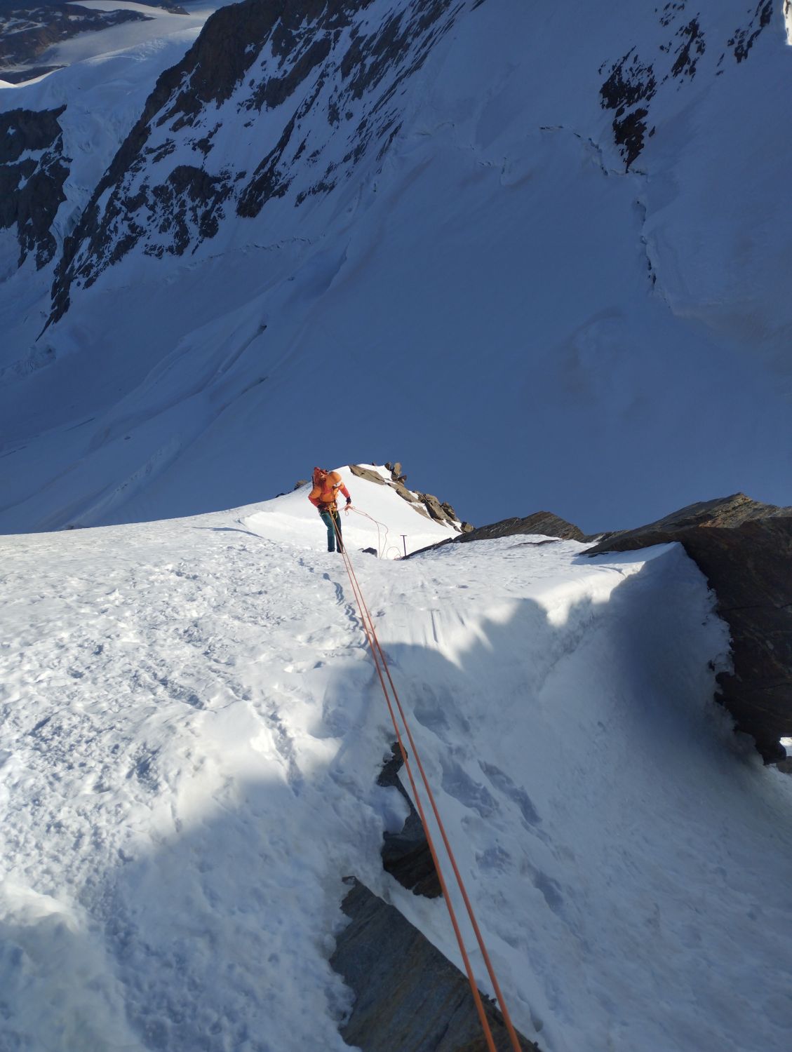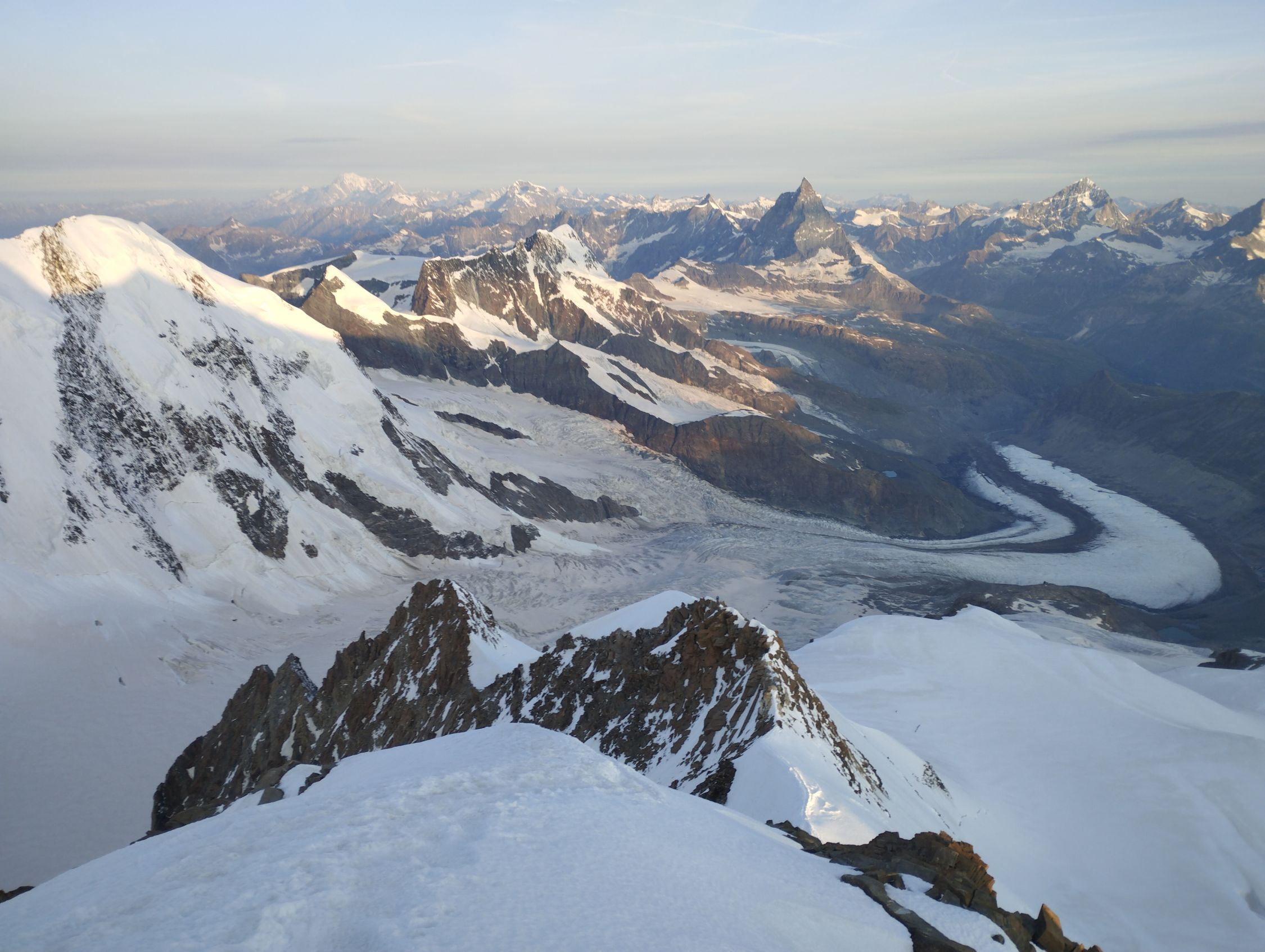 Bombastische Verhältnisse! Gletscher mit perfekter Schneeauflage, somit fast alle Spalten schön abgedeckt. Wir sind von Zermatt aus gestartet, und haben den Gipfel nach 2 Biwaks um 7:00 erreicht. Abseilen zum Silbersattel nicht sehr angenehm aber mit Geduld geht's. Wenn's dort Stau gibt wird allerdings ziemlich ungemütlich.. Im Anschluss noch einmal biwakiert, um am Tag 4 wieder nach Zermatt abzusteigen. Eine eindrückliche Reise mit spannender Fauna und Flora, vielen alpinen Ereignissen wie z.B. riesige Lawinenabgänge vom Liskamm oder wummende Gletscherspalten. Absolut phänomenal!