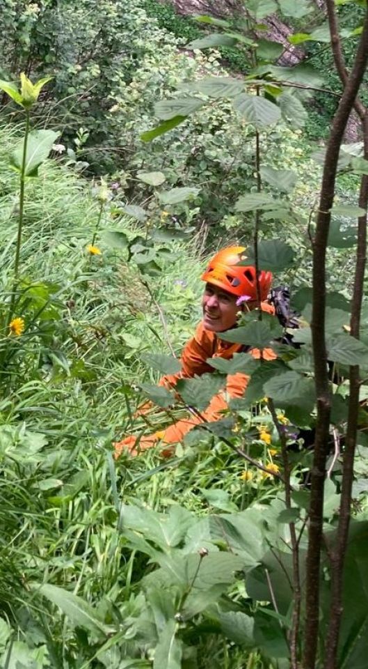 Sehr warm und schwül, vom Raddepot bis zu den Fichten unglaublich viele Bremsen; Gras griffig, aber Untergrund feucht; in der Schlüsselpassage läuft noch ein bisschen Wasser (nicht wild).