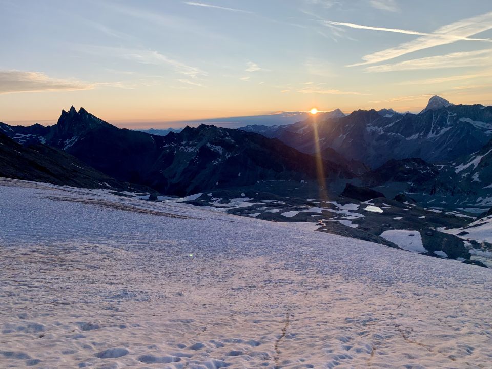 Der Gletscher bis La Luette ist gut gedeckt und einfach zu machen. Aufgrund der Verhältnisse wird der Schnee schnell weich. Es hat noch viel Firn auf dem Grat. Man wechselt also ständig zwischen Schutt und Firn.