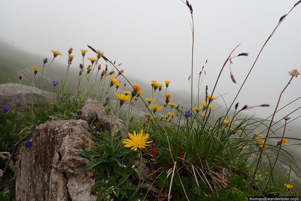 Aufgrund der Bewölkung waren es angenehme Verhältnisse. Der Weitblick und der Tiefblick war nicht vorhanden. Die Sicht für die Tour war super. Für die Gipfelrast, war es eher kühl.