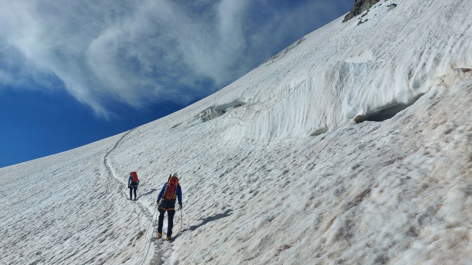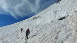 Gute Verhältnisse. In der Mulde auf dem Weg zur Leiter liegt noch ziemlich viel Schnee. Bei den warmen Temperaturen am Morgen, war dieser aber gut auch ohne Steigeisen zu gehen. Der Fels war komplett schneefrei und trocken. In der NE-Flanke, kurz vor dem ersten Firngrat gab es ein kurzes eisiges/blankes Stück, das aber gut zu gehen war da nicht allzu steil. Gletscher oberhalb gut mit Schnee bedeckt. Abstieg unproblematisch.