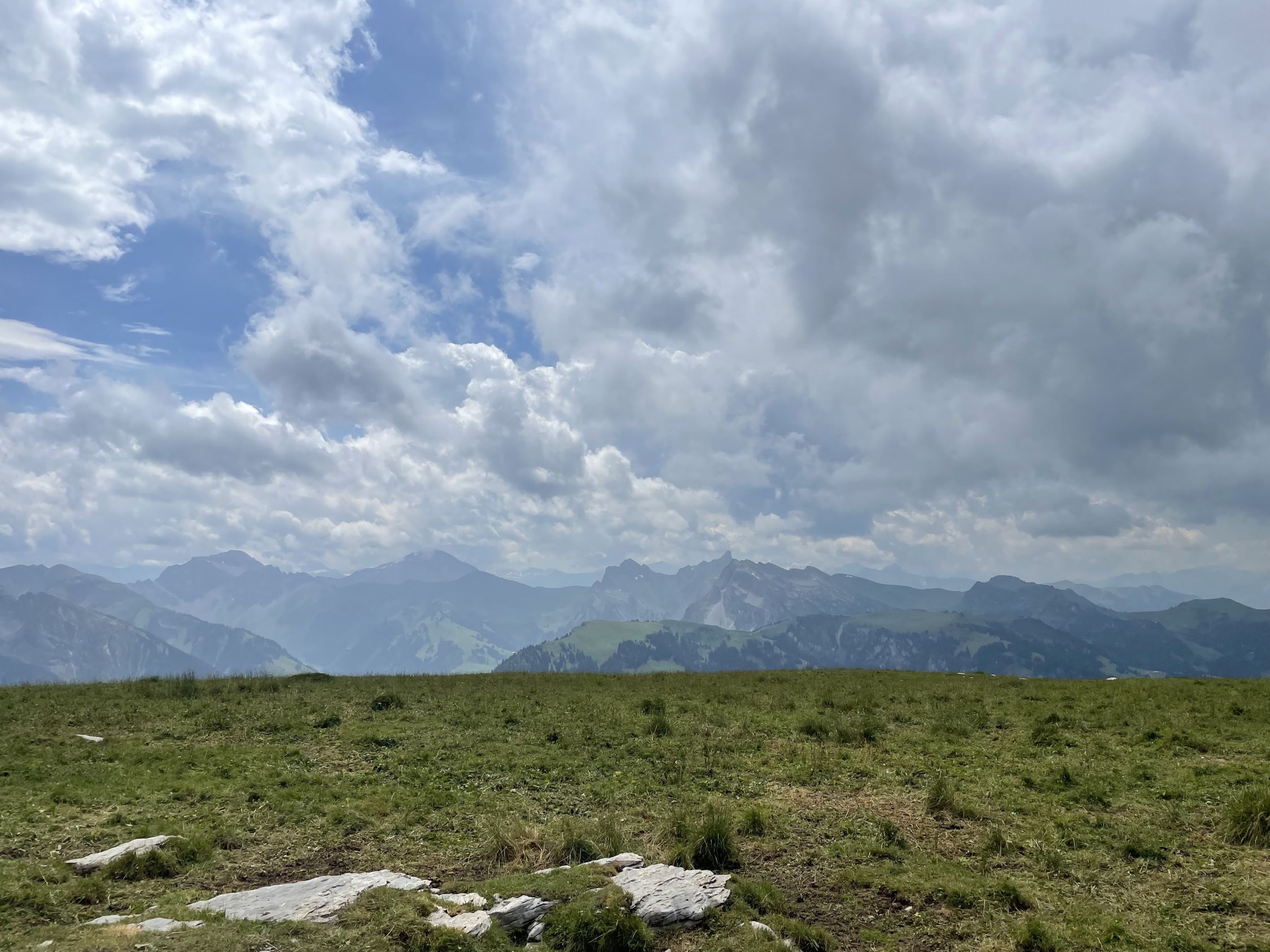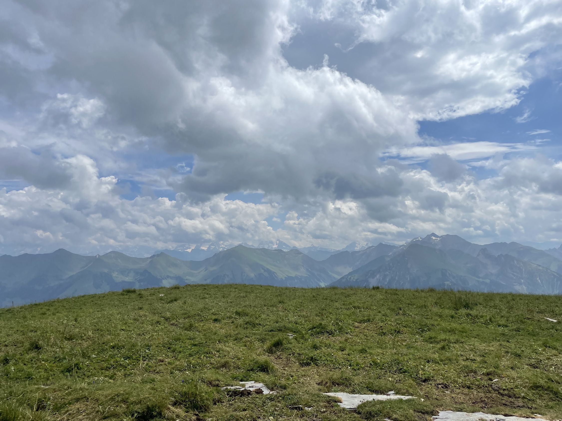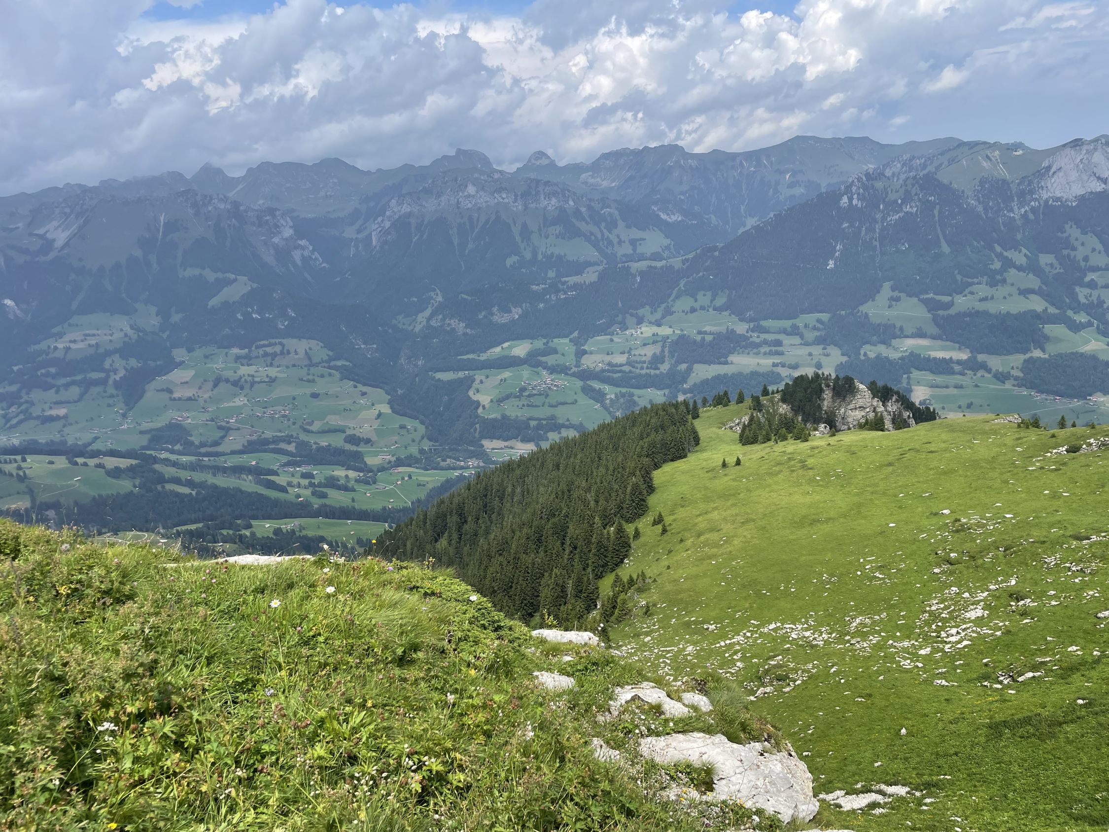 Schon länger wollte ich wieder mal auf den Turnen, im Winter ist das ja keine verlässliche Skitour mehr, der Südausrichtung und den wärmeren Wintern zufolge. Heute aber war es soweit, mit dem Auto bis unterhalb PP Meniggrat und von da aus steigt es gleich zünftig an, nicht schwierig, aber heute war alles völlig nass von den schweren Gewittern des Vortages. Aufstieg problemlos und oben auch sehr schön mit Aussicht ins Herz des Diemtigtals. Am Gipfel informierte mich die Wetterapp, dass in 30 Minuten ein heftiges Gewitter kommen werde, was ich aufgrund des Blicks westwärts auch glaubte. Also hopp sofort wieder runter, um die oberen Alphütten und die Alpstrasse noch zu erreichen. Letztere bevorzugte ich nämlich zum Abstieg, um die nassen steilen Stellen im Wald zu umgehen. Das bewährte sich und obendrein zog das Gewitter Richtung Adelboden, ich erreichte trockenen Hauptes das Auto.