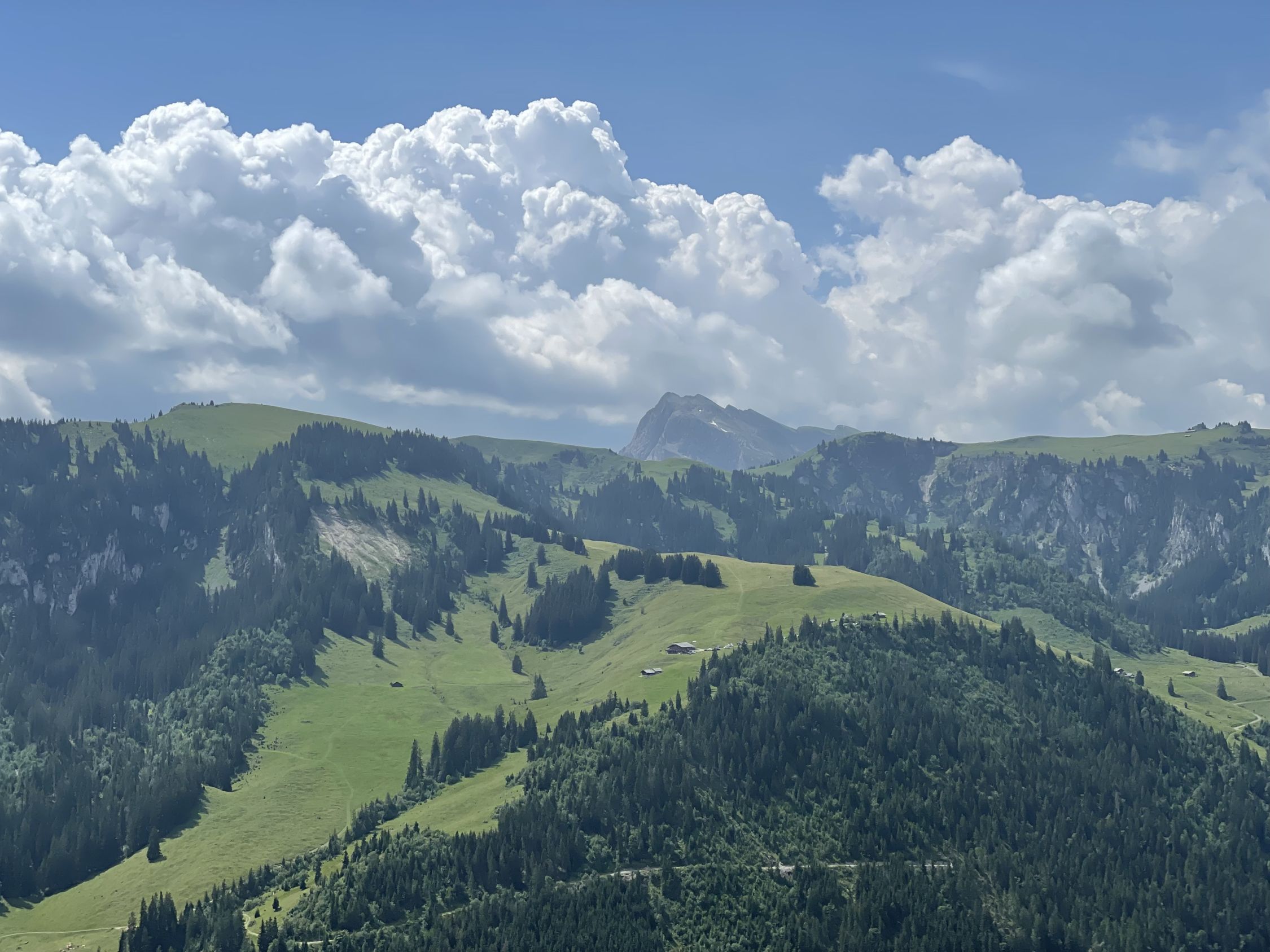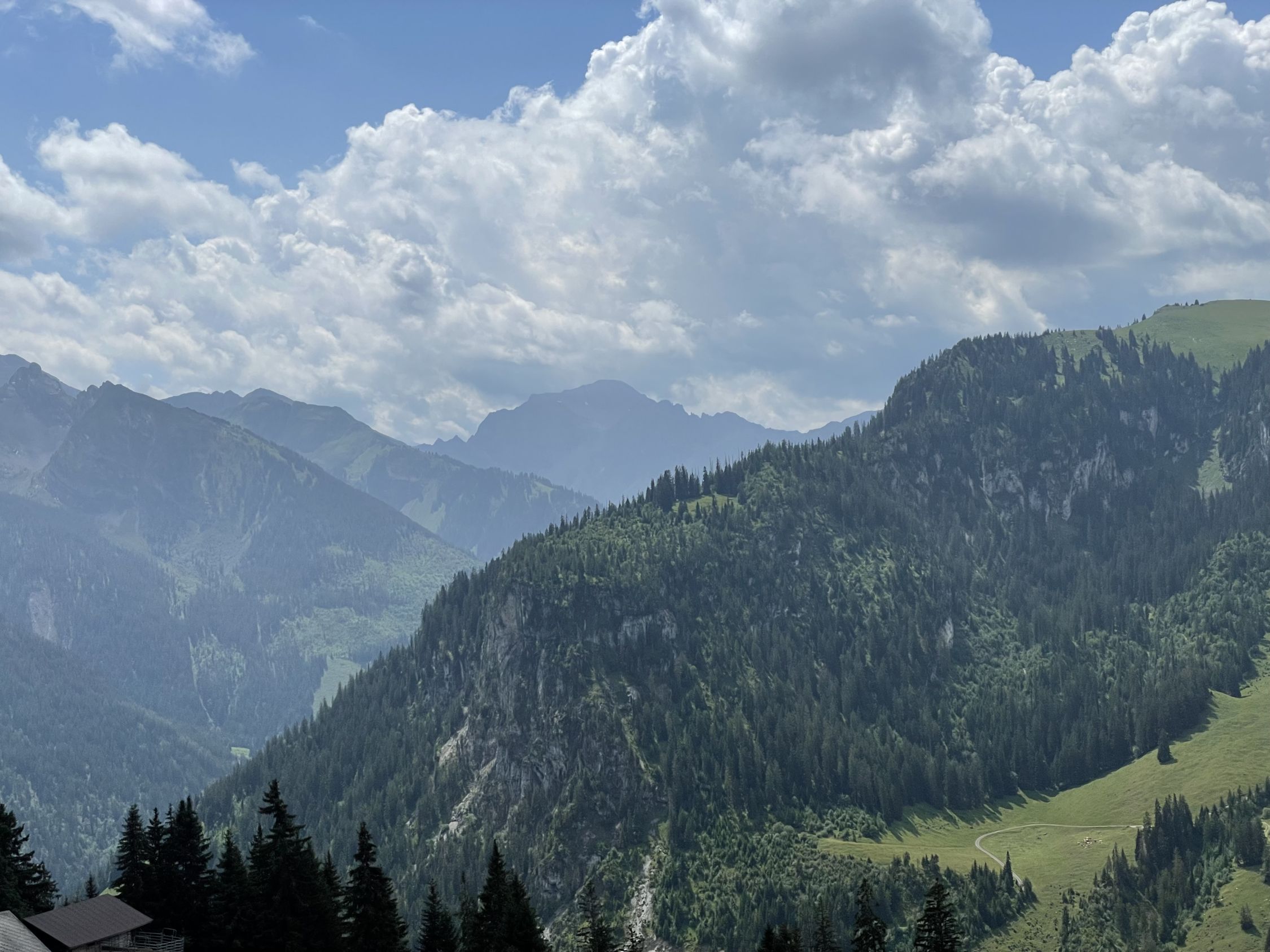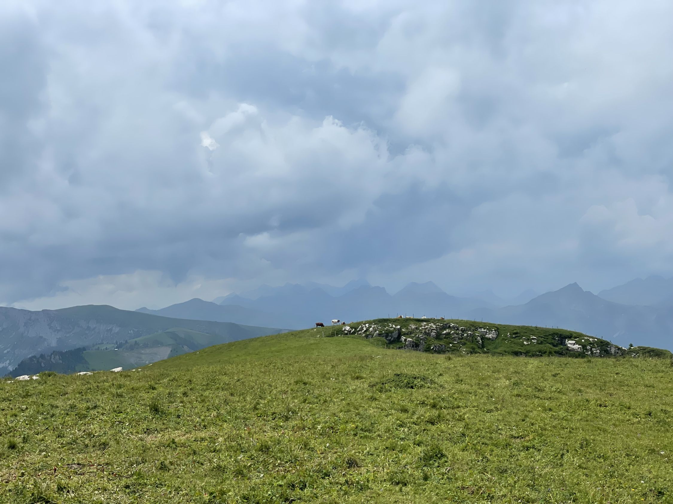 Schon länger wollte ich wieder mal auf den Turnen, im Winter ist das ja keine verlässliche Skitour mehr, der Südausrichtung und den wärmeren Wintern zufolge. Heute aber war es soweit, mit dem Auto bis unterhalb PP Meniggrat und von da aus steigt es gleich zünftig an, nicht schwierig, aber heute war alles völlig nass von den schweren Gewittern des Vortages. Aufstieg problemlos und oben auch sehr schön mit Aussicht ins Herz des Diemtigtals. Am Gipfel informierte mich die Wetterapp, dass in 30 Minuten ein heftiges Gewitter kommen werde, was ich aufgrund des Blicks westwärts auch glaubte. Also hopp sofort wieder runter, um die oberen Alphütten und die Alpstrasse noch zu erreichen. Letztere bevorzugte ich nämlich zum Abstieg, um die nassen steilen Stellen im Wald zu umgehen. Das bewährte sich und obendrein zog das Gewitter Richtung Adelboden, ich erreichte trockenen Hauptes das Auto.