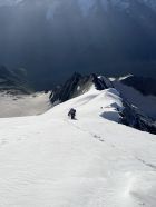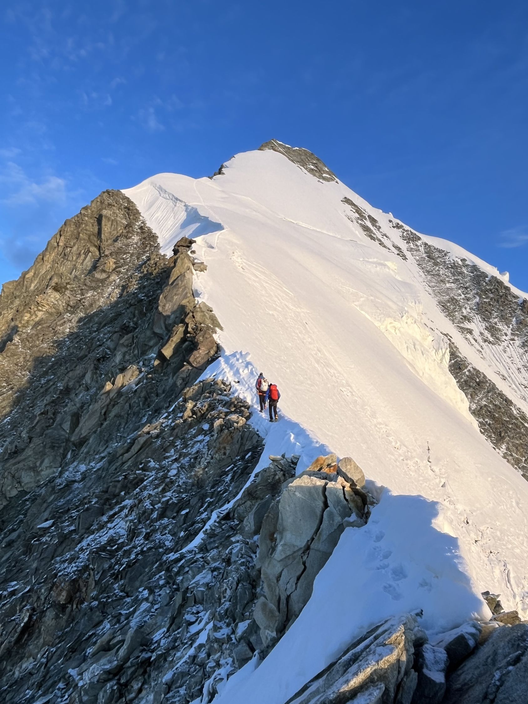 Am Grat selbst alles perfekt bis auf einzelne vereiste Stellen beim Aufstieg auf dem Felsabschnitt zw. 3'900 und 4'000 m, v.a. in der Nordexposition.