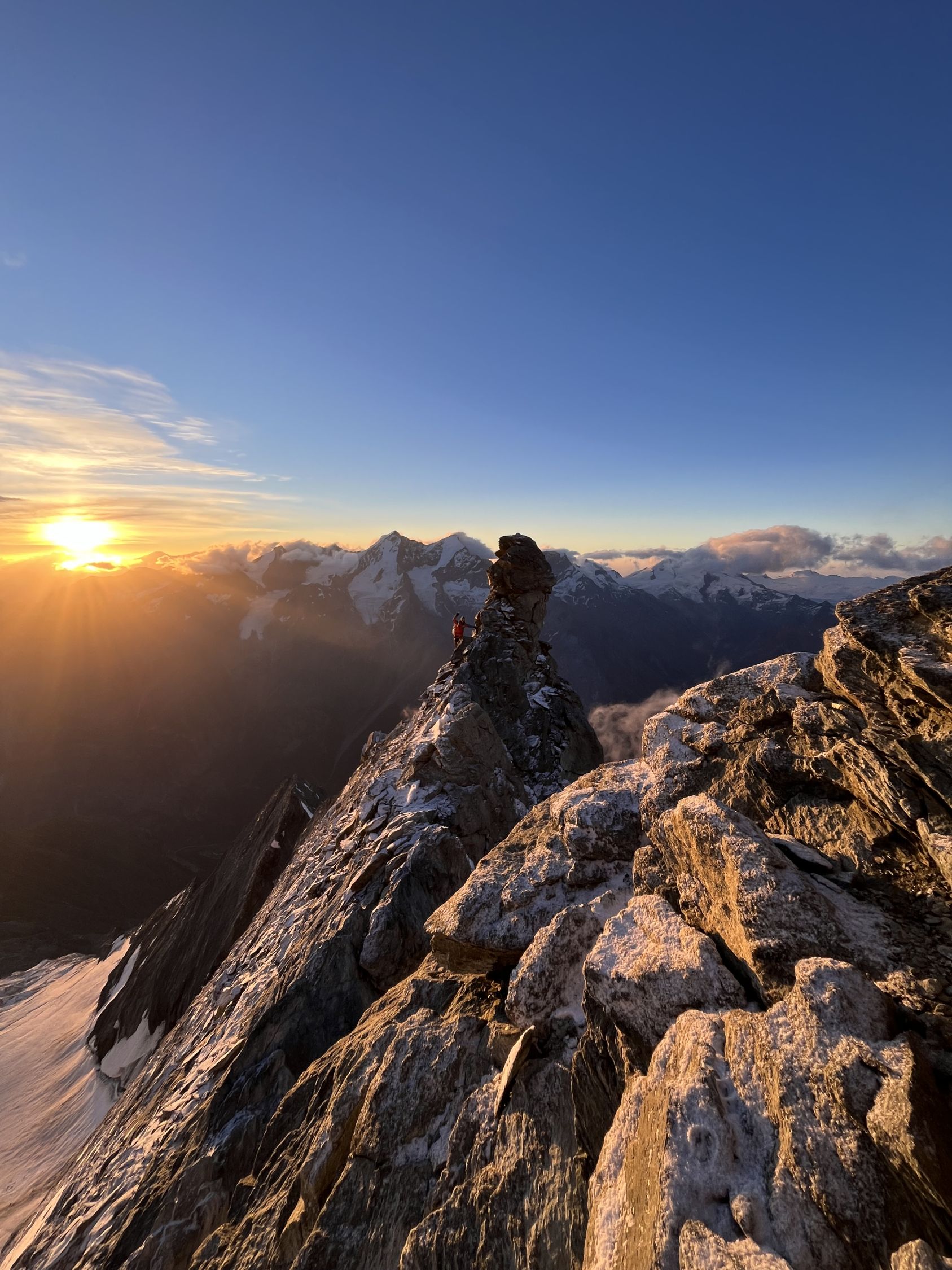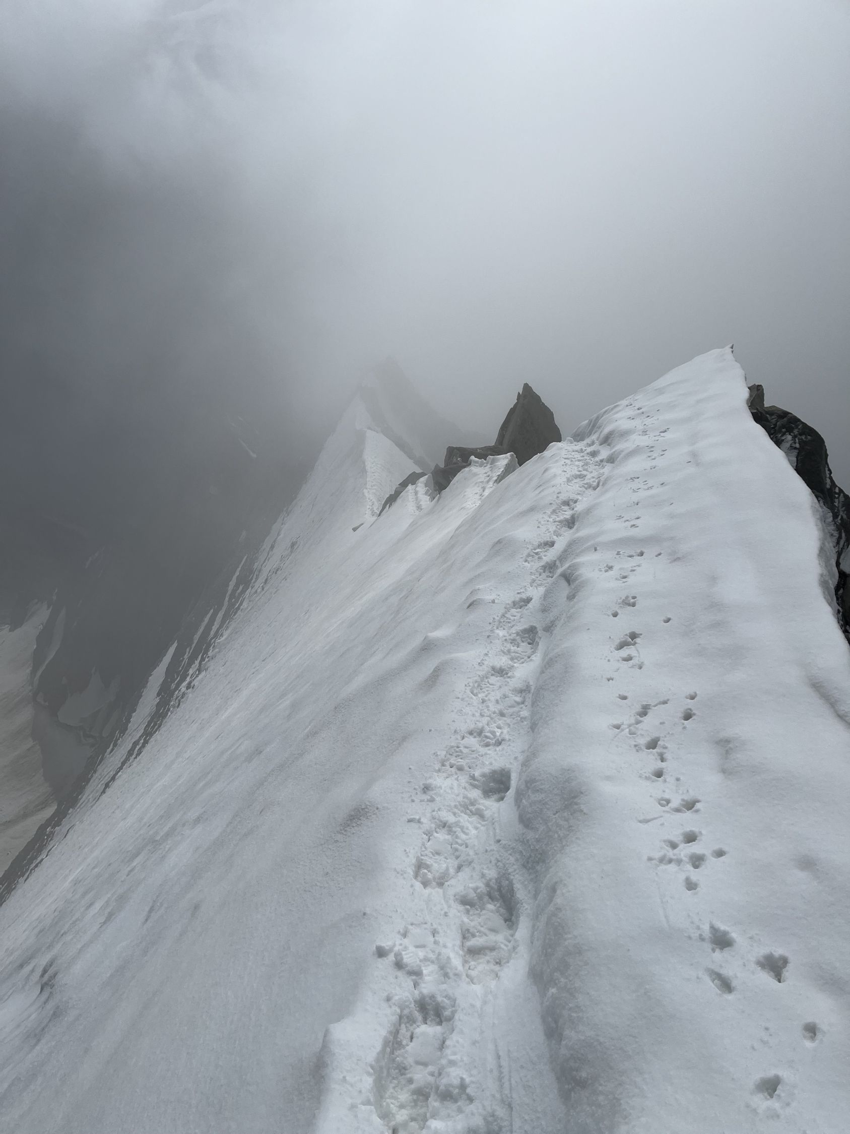 Hinter uns ging eine vierköpfige polnische Gruppe, die sehr spät dran war. Zwei von ihnen waren am Grat ohne Seil unterwegs... Ich hoffe, sie haben es rechtzeitig zurück in die Hütte geschafft, bevor am Nachmittag die heftigen Gewitter kamen!