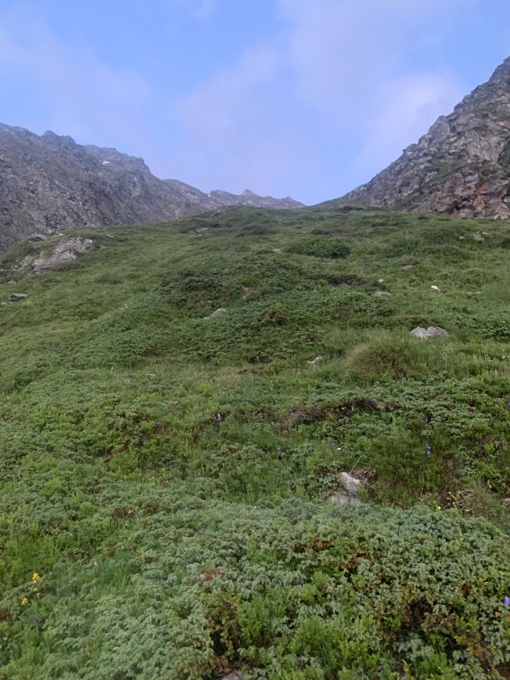 Landschaftlich sehr reizvoller Zustieg ab Herbriggen durch die Schlucht & traumhaft schöne Bergwälder. Viele Steinböcke und Schneehühner angetroffen. Glücklicherweise fand ich einen überdachten Biwakplatz etwas oberhalb von P2269 - es wäre sonst eine eher feuchte Nacht geworden.