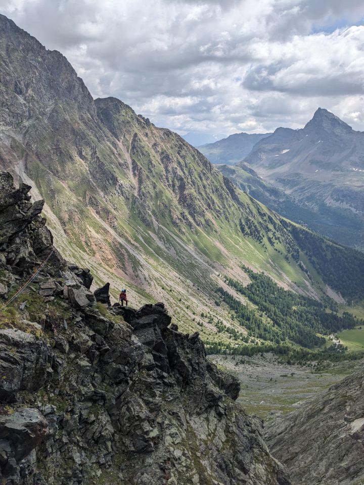 Die Absicherung ist okay, man kann teilweise Friends oder am Grat Köpfelschlingen einsetzen.