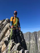 Der einzige Haken auf der Klettertour wurde letzten Sommer bei einem Sturz herausgerissen. Jetzt muss die Stelle geklettert werden.