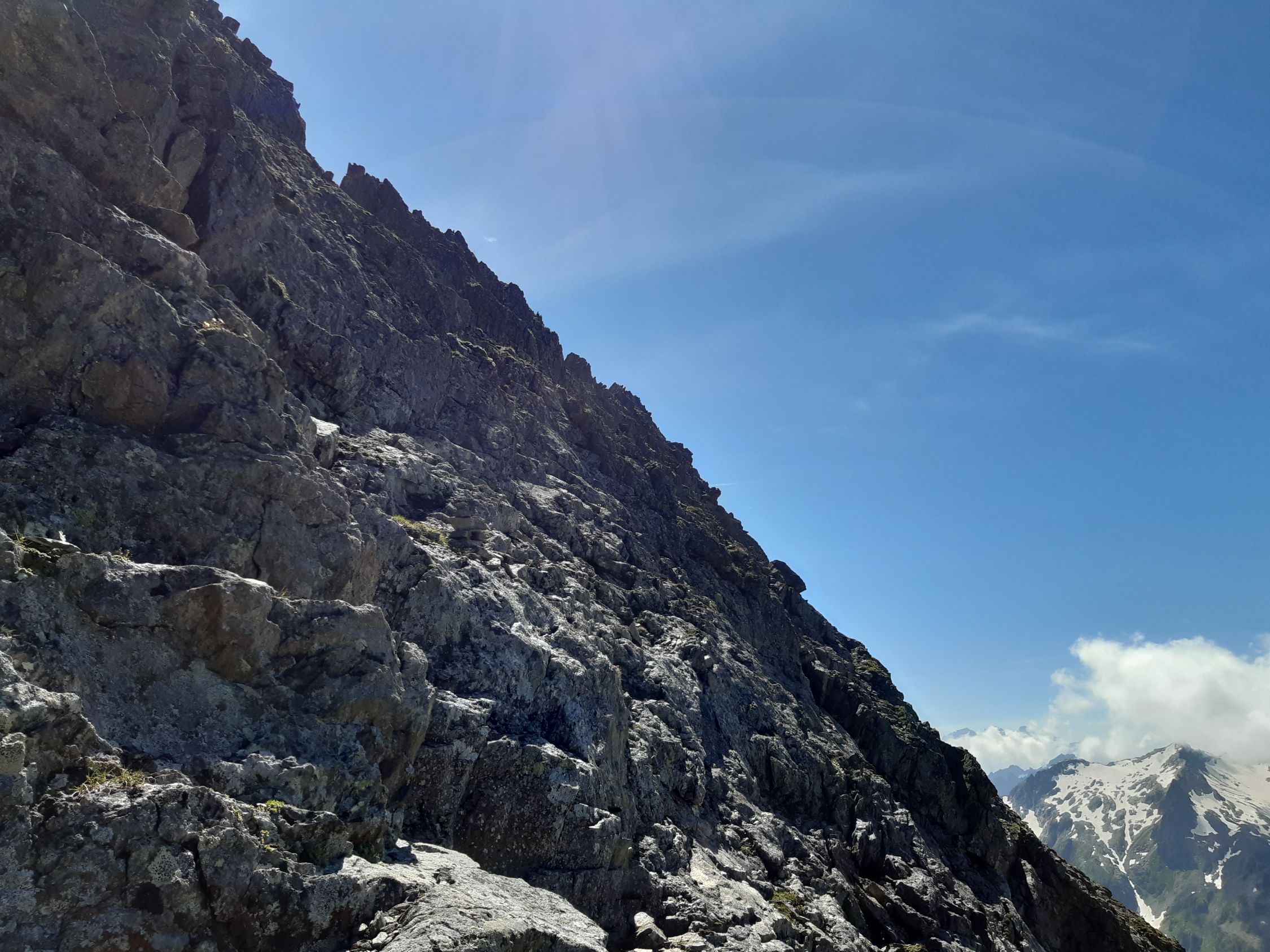 Schöner Felsgipfel mit steilen Wänden und guter Aussicht