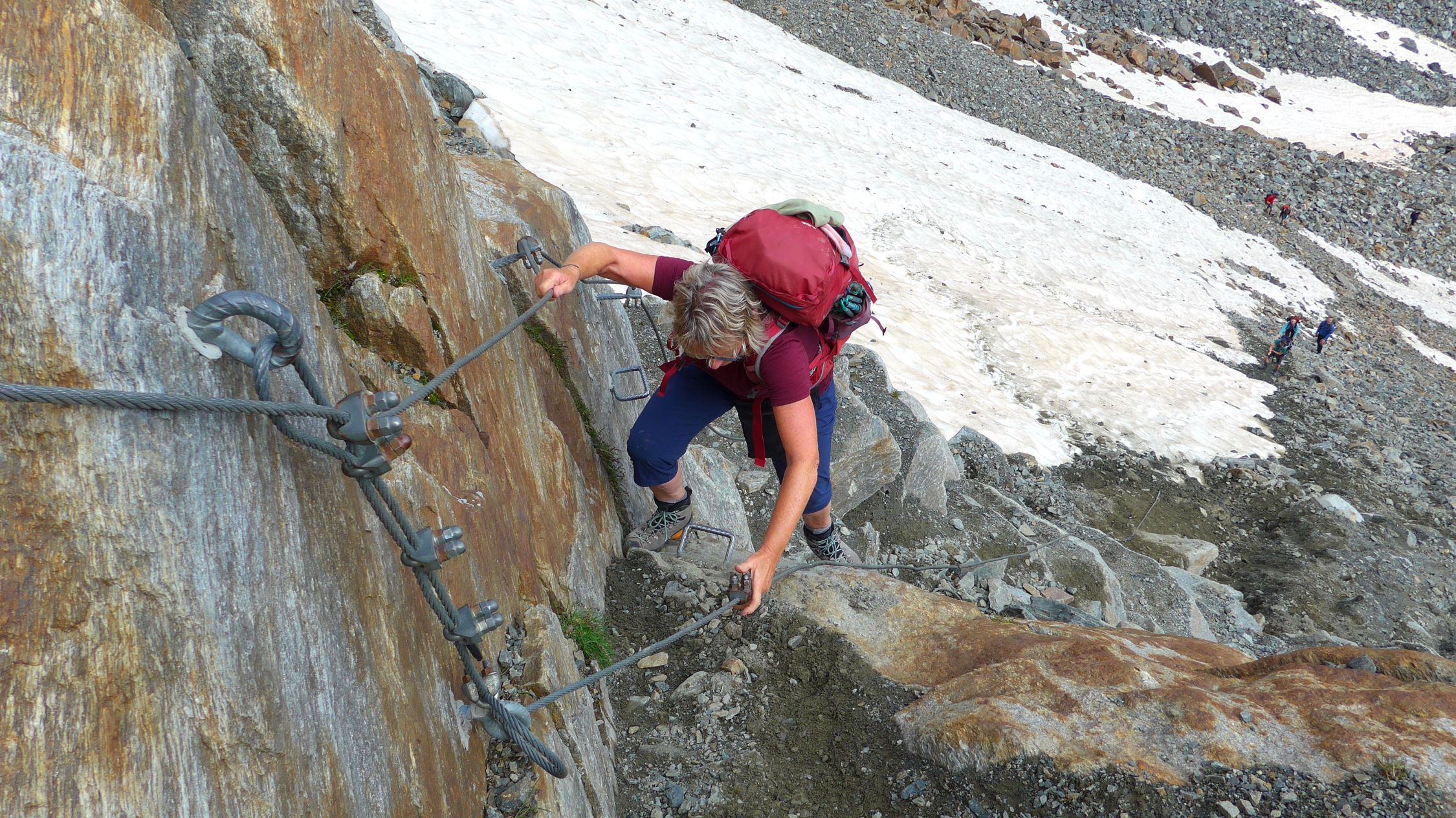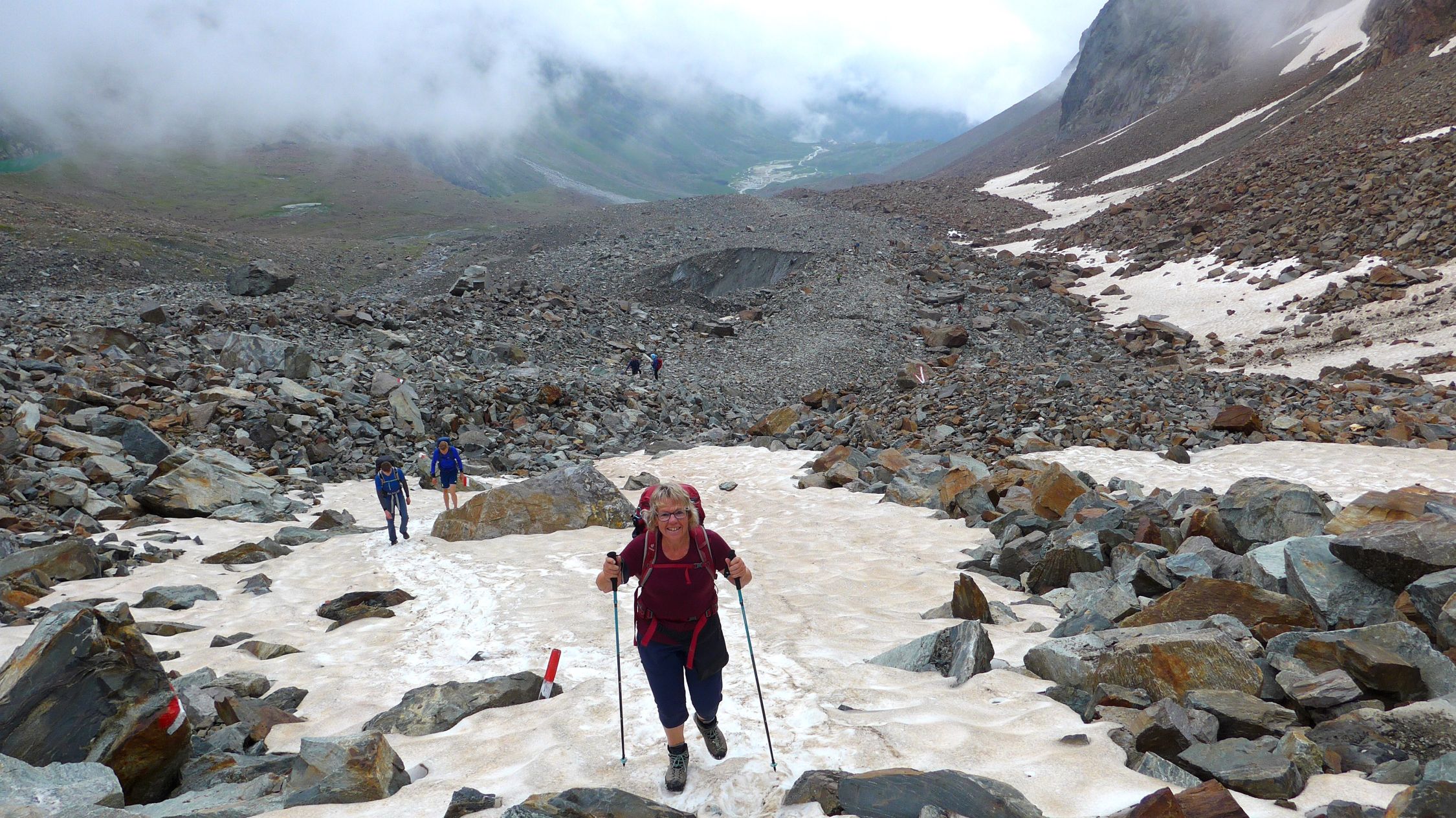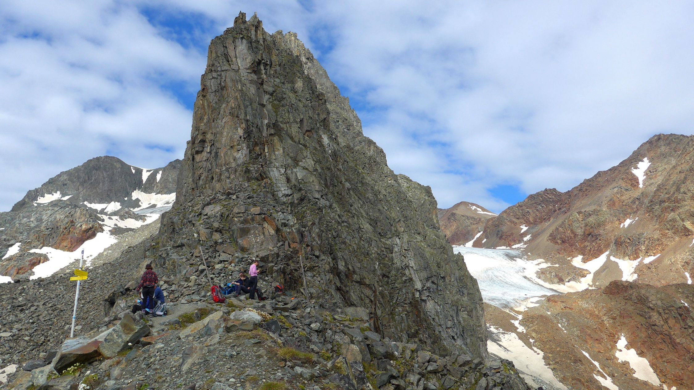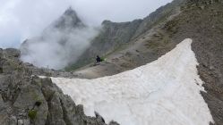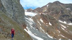Am 3. Tag folgt nun eine der längsten und anspruchsvollsten Etappen. Der Übergang am Grawagrubennieder (2881m) ist die Schlüsselstelle des gesamten Stubaier Höhenweges. Düsteres, abschüssiges Fels- und Schottergelände muss hier überwunden werden. Oft liegen nordseitig noch lange steile Schneefelder und die Steinschlaggefahr durch Vorausgehende ist nicht zu unterschätzen. Oben angekommen dürfen wir aufatmen und geniessen.