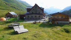 Am 2. Tag führt nun die erste Höhenetappe über den 2714m hohen Schrimmennieder hinüber zur Neuen Regensburger Hütte. Eine sehr schöne und abwechslungsreiche Route (T3, 6h, 800/650 Hm auf/ab). Das helle Ambiente mit viel Glas, 100% vegetarische Küche und die fantastische Lage zeichnen die Neue Regensburger Hütte besonders aus.