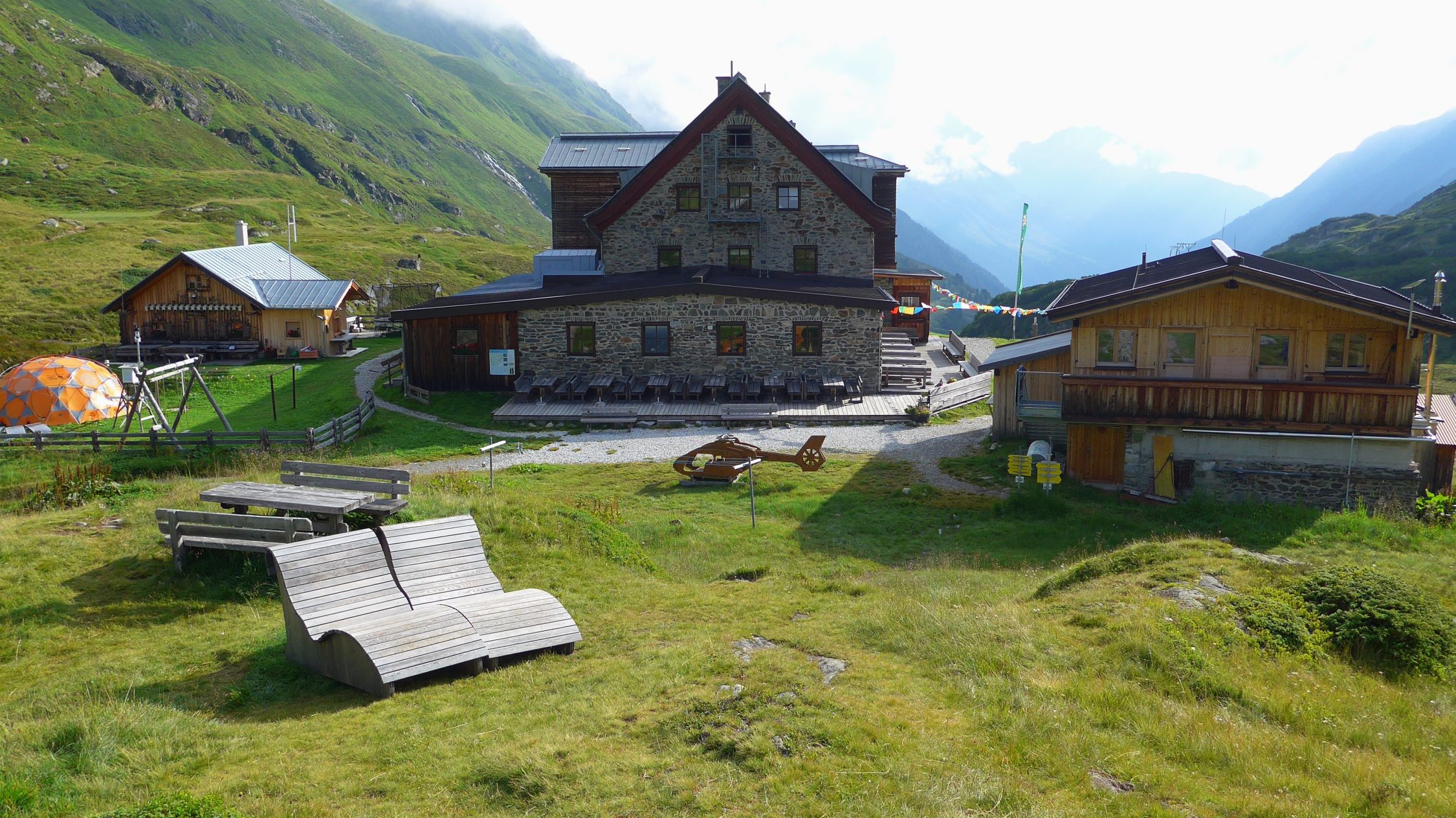 Tag 1 beginnt mit dem Aufstieg zur Franz-Senn-Hütte (700 Hm). Wir geniessen den Hüttenabend, die vorzügliche Küche und die Gastfreundschaft der Familie Fankhauser.
