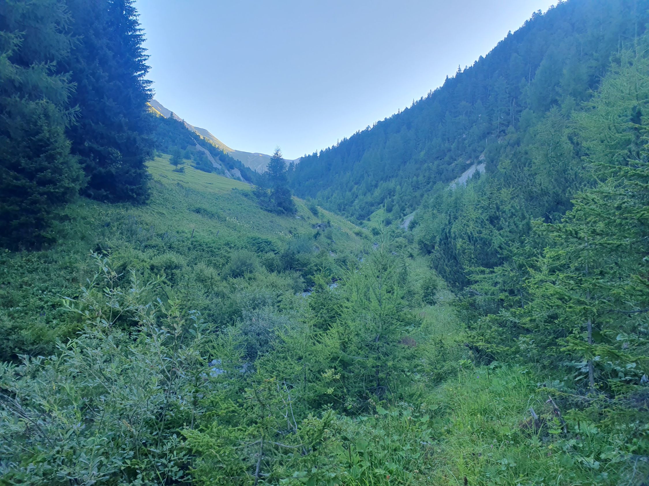 Ab Fuorcla Val dal Botsch unschwierig im Nationalpark hinab bis zur Bushaltestelle Stabelchod P8 (stündlich ein Bus)!