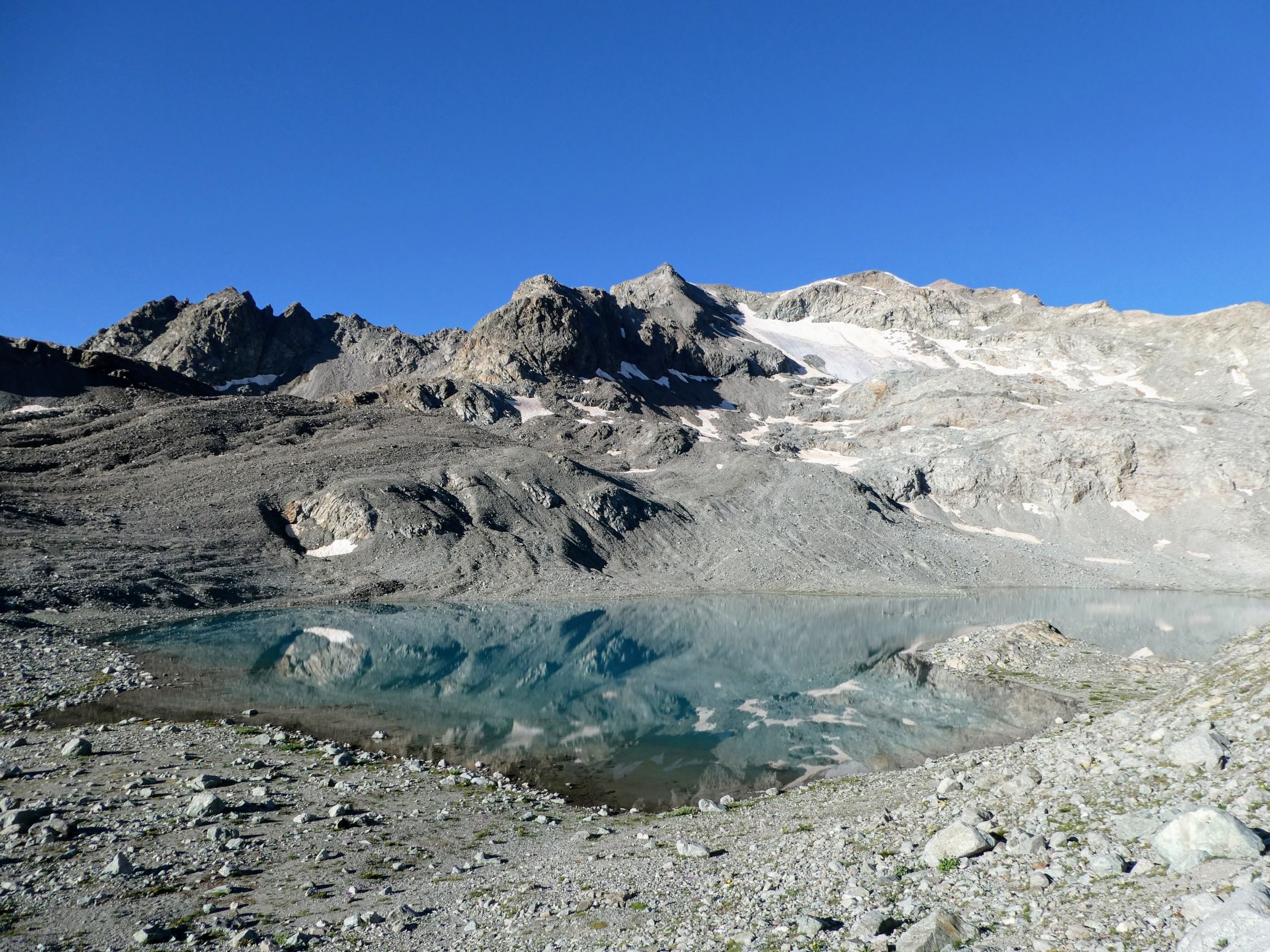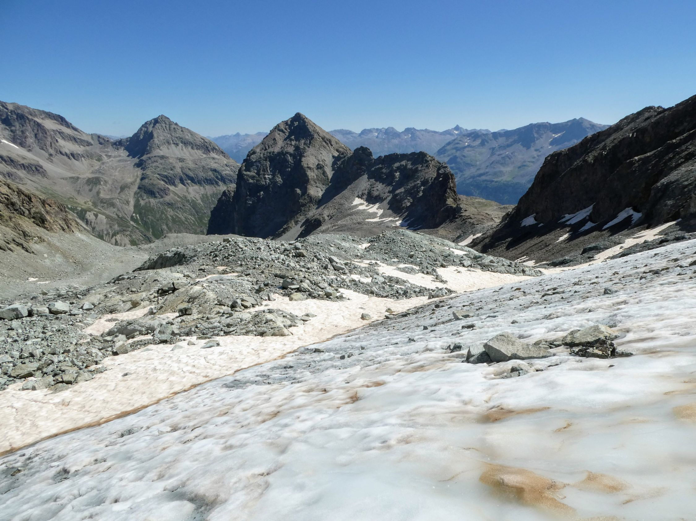 In der Gianda Polaschin, aber auch auf dem Gletscher herrscht Steinschlaggefahr.