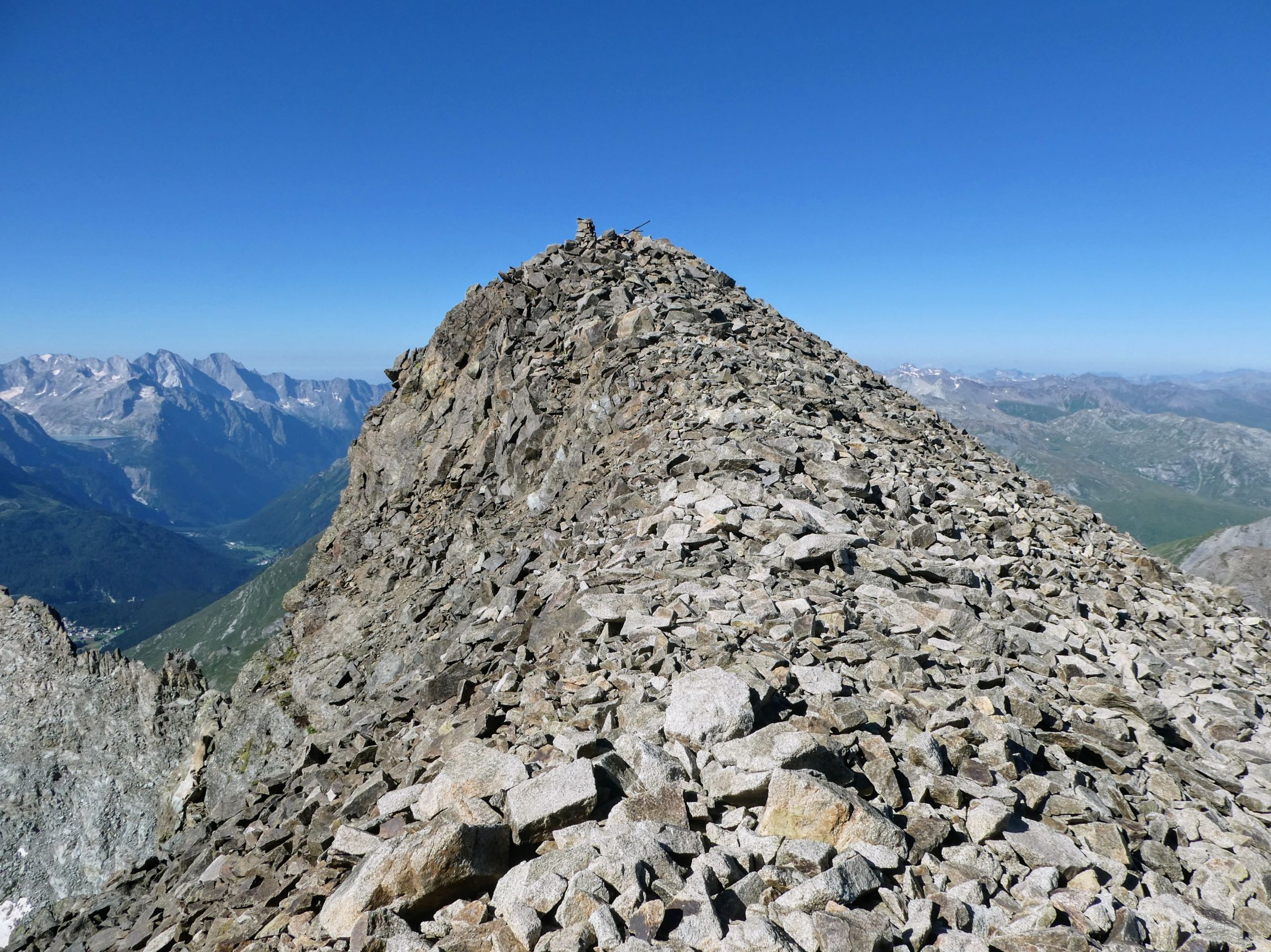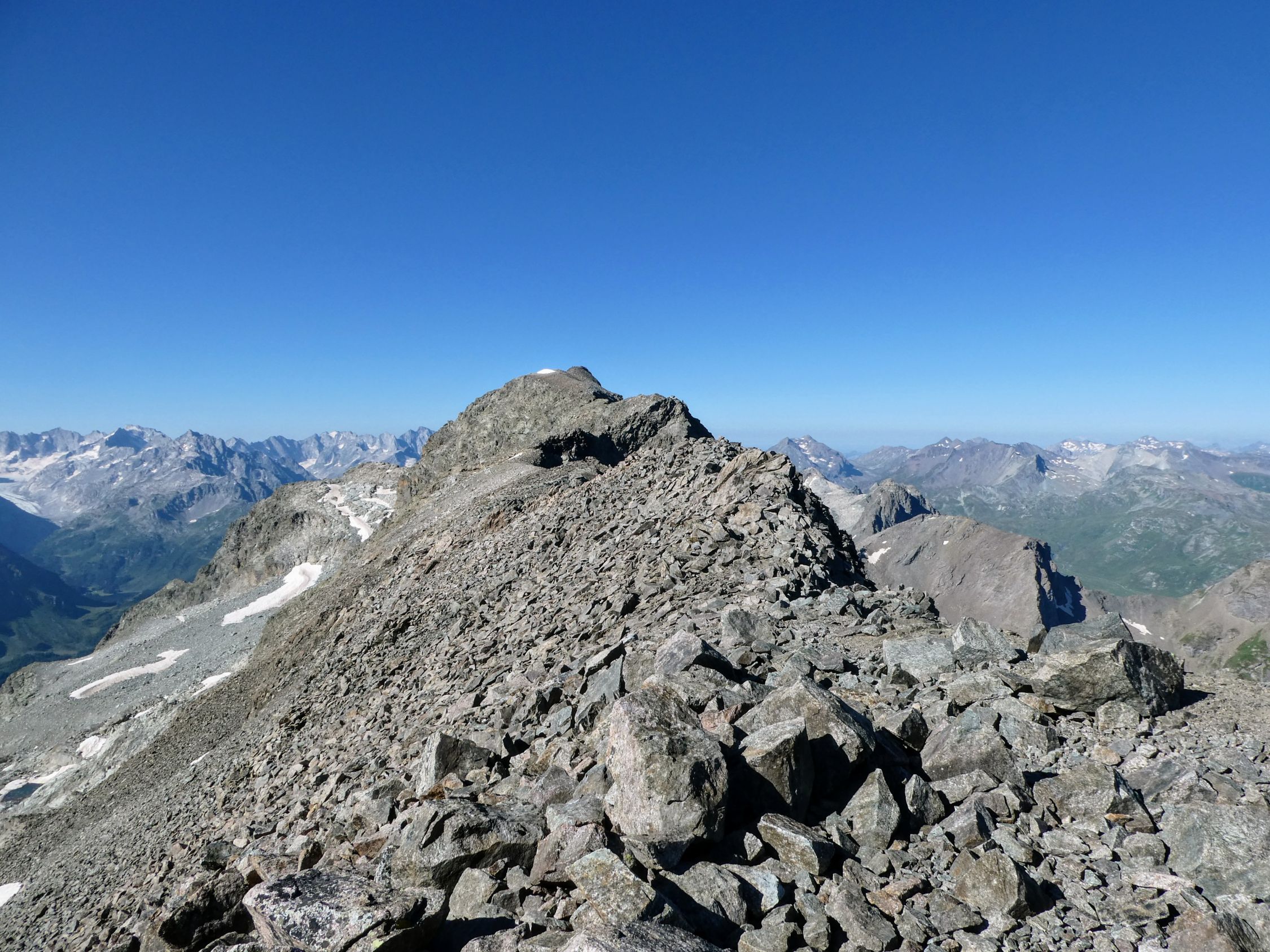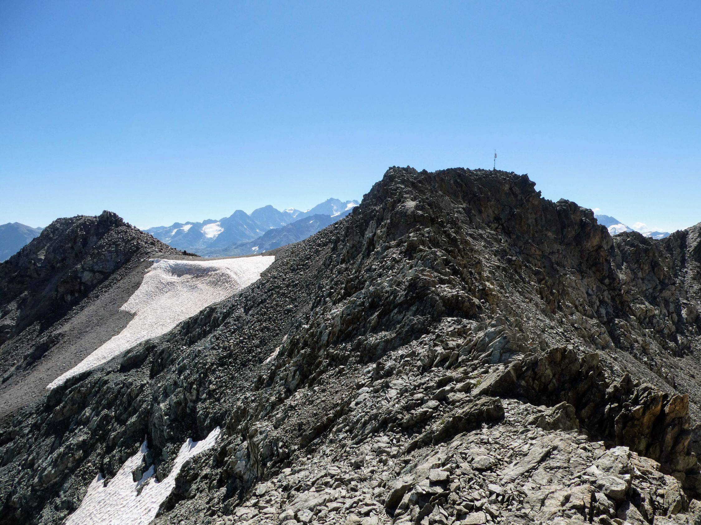 Der Grat vom Skigipfel zum Hauptgipfel ist schneefrei und bestens begehbar.