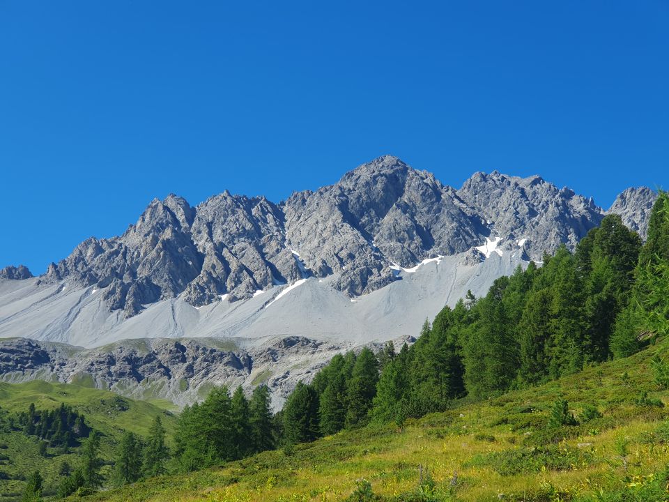 Nach der gestrigen 9 stündigen Tour auf dem Piz Plavna Dadaint wollte ich heute eigentlich etwas Kürzeres machen, aber da die Wetterprognosen so genial waren musste es heute der Piz Tavrü sein! Somit mit dem E-Bike aus dem Val Müstair bis S-charl. Ab da hinein in das Val Tavrü. Bei P2096 wird es weglos und man folgt da das wunderschöne Bächlein nach südwesten, das in der Karte gar nicht eingezeichnet ist. Die Mots da Nossa Donna (P2495) habe ich mittig durch eine Schneise gut erlangen können. Danach unbedingt auch Bergschuhe umsatteln!! Ab Gravas Alba muss ein sich langziehendes Geröllfeld bis zur ersten Rinne der Nordflanke des Piz Tavrü hochgekämpft werden.