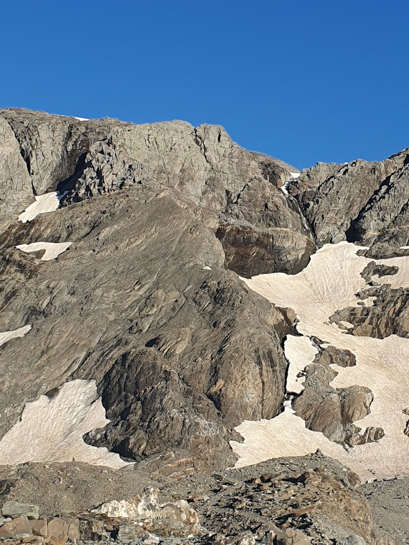 Schnee wird langsam schmelzen - dann früher oder später ganzes "Gletscherchen" aper.