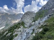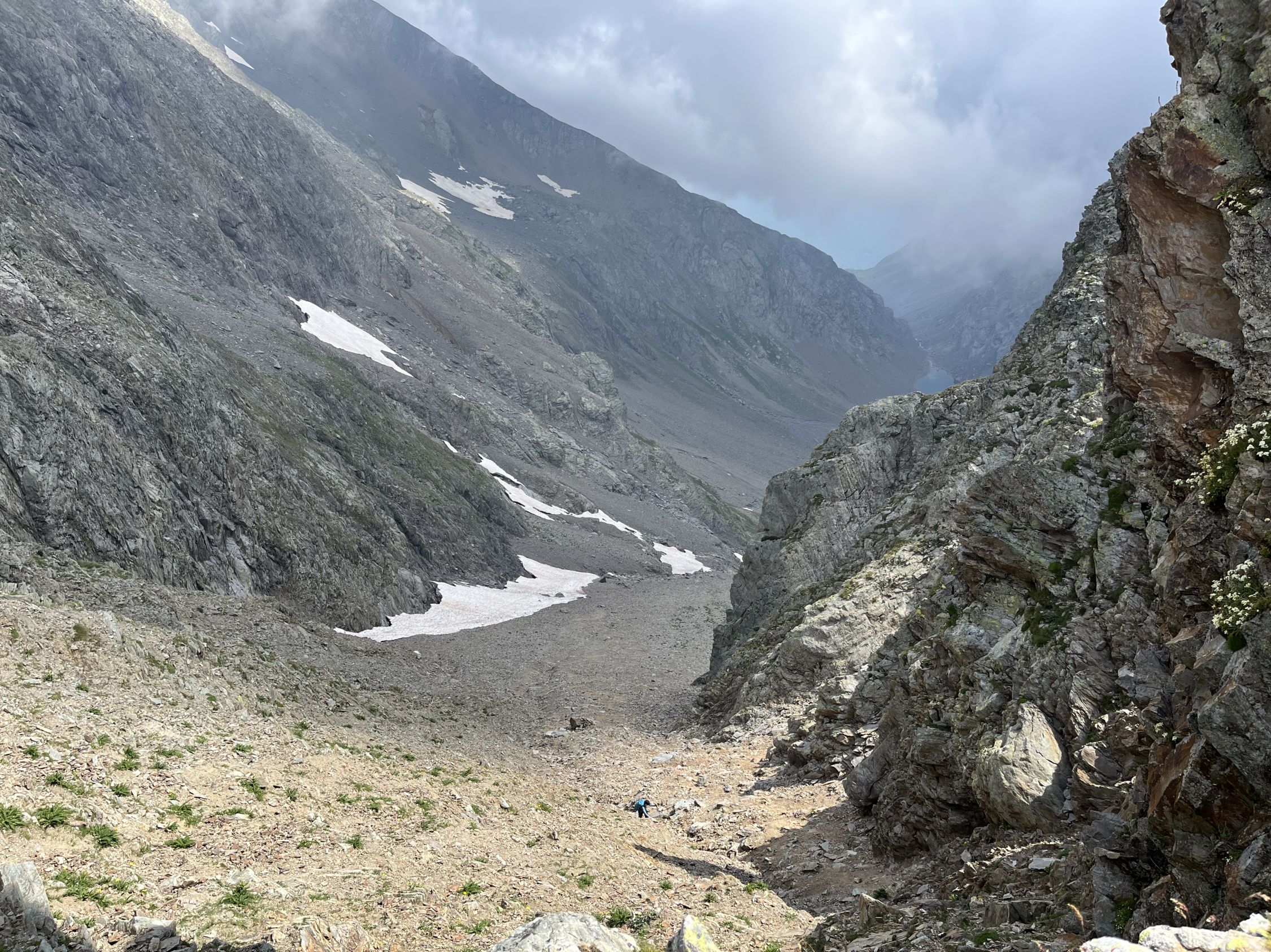 Start am Vortag um 6:30 zum Passo di Coca. Pass erreicht man in ca. 5.5h. Das Firnfeld ist noch gut eingeschneit, daher brauchten wir die ohnehin vergessenen Steigeisen u. Pickel nicht. Der Abstieg vom Passo die Coca ist steil. Die ersten 100hm im gestuften, geröllogen und brüchigen Fels. Einzig die vielen Markierungen werten den Bruchhaufen auf. In 1h ist man dann am Lago di Coca. Da es schon zugezogen war, entschieden wir uns den Pizzo di Coca erst am nächsten Tag in Angriff zu nehmen. Für die Strecke Lago die Coca/pizzo di Coca hoch und runter muss man 6 h rechnen. Lago di Coca zur Hütte die Coca. 30min.