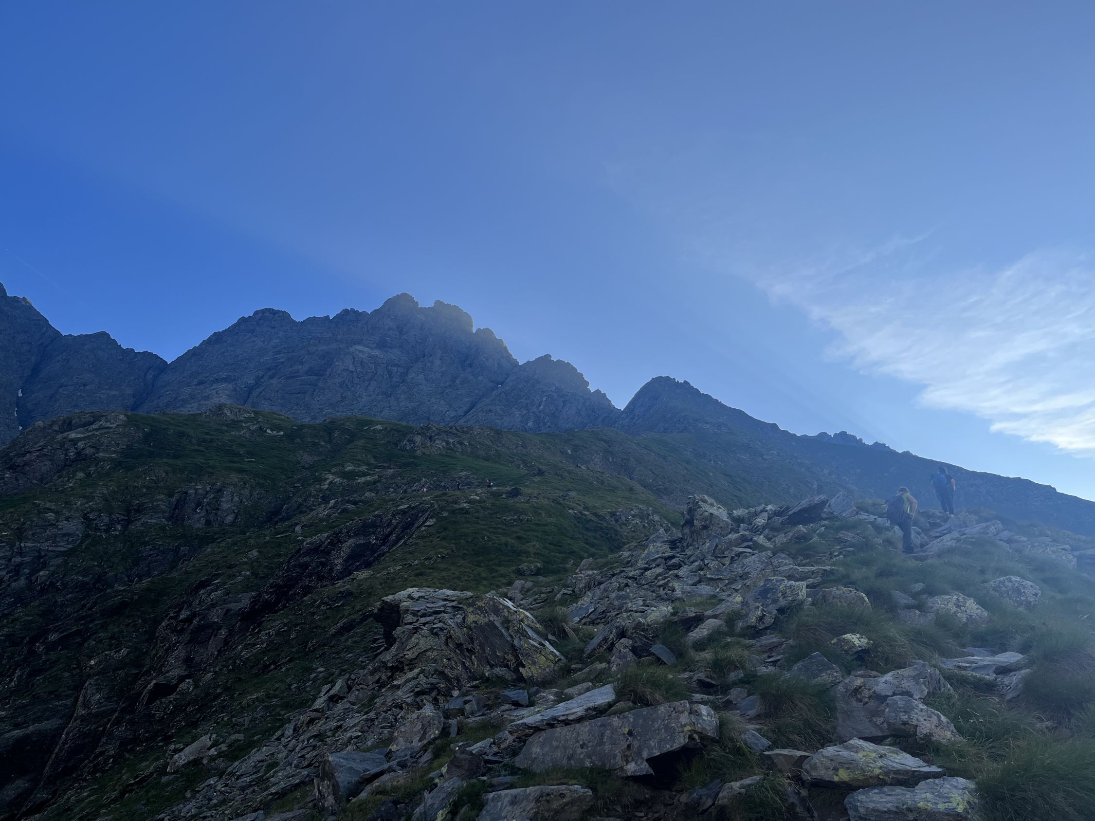 Am nächsten Tag um 6:30 von der Hütte los, 10:00 am Gipfel, um 12:45 am Lago di coca, um 14:30 am Passo di Coca, um 19:00 beim Auto beim Castello del Aqua auf der Alpe Orobie/Ca Pizzini P.1200