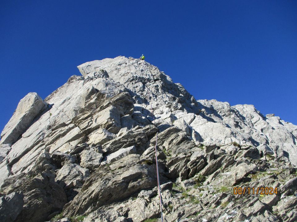 Wir waren allein unterwegs. Frühmorgens sahen wir zwei Personen vor und zwei hinter uns, die aber offensichtlich andere Ziele hatten. Den ganzen Tag über begegneten wir weder in der Kletterei, noch im Abstieg zur Martinsmad niemandem mehr.