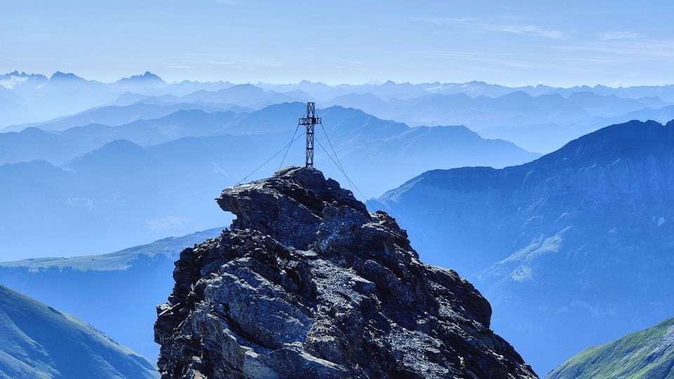 Beste Vrehältnisse für die Besteigung des Zanaihorns. Bis ca. 1030 Uhr spaziert man auf der Route im Schatten, ziemlich angenehm. Auch scheint dieser Berg keine Besucherströme anzuziehen, so dass man seine Ruhe hat und das phänomenale Panorama geniessen kann.