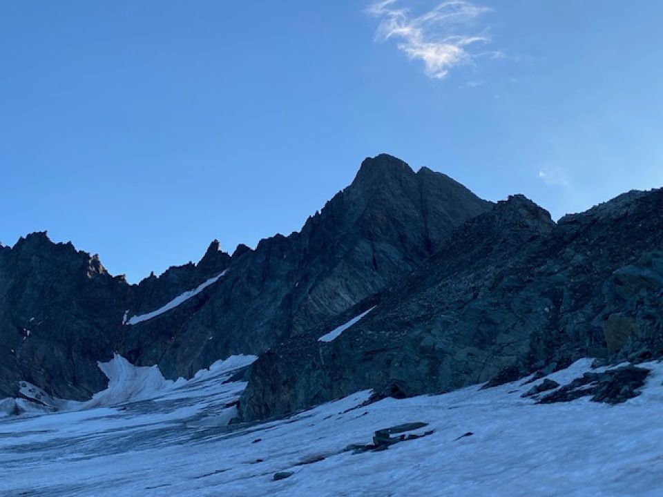 Wetter bis nachmittags ausgezeichnet, später wolkig. Grat komplett schneefrei und sehr genussvoll zu klettern. Abstieg über Adlersruh, auch hier oberer Teil schneefrei. Am Gletscher oberhalb der Adlersruh dann unangenehm, Schnee so weich, dass er kaum Halt auf dem Eis bietet. Ködnitzkees überwiegend blank, Vorsicht im oberen, steileren Bereich!
