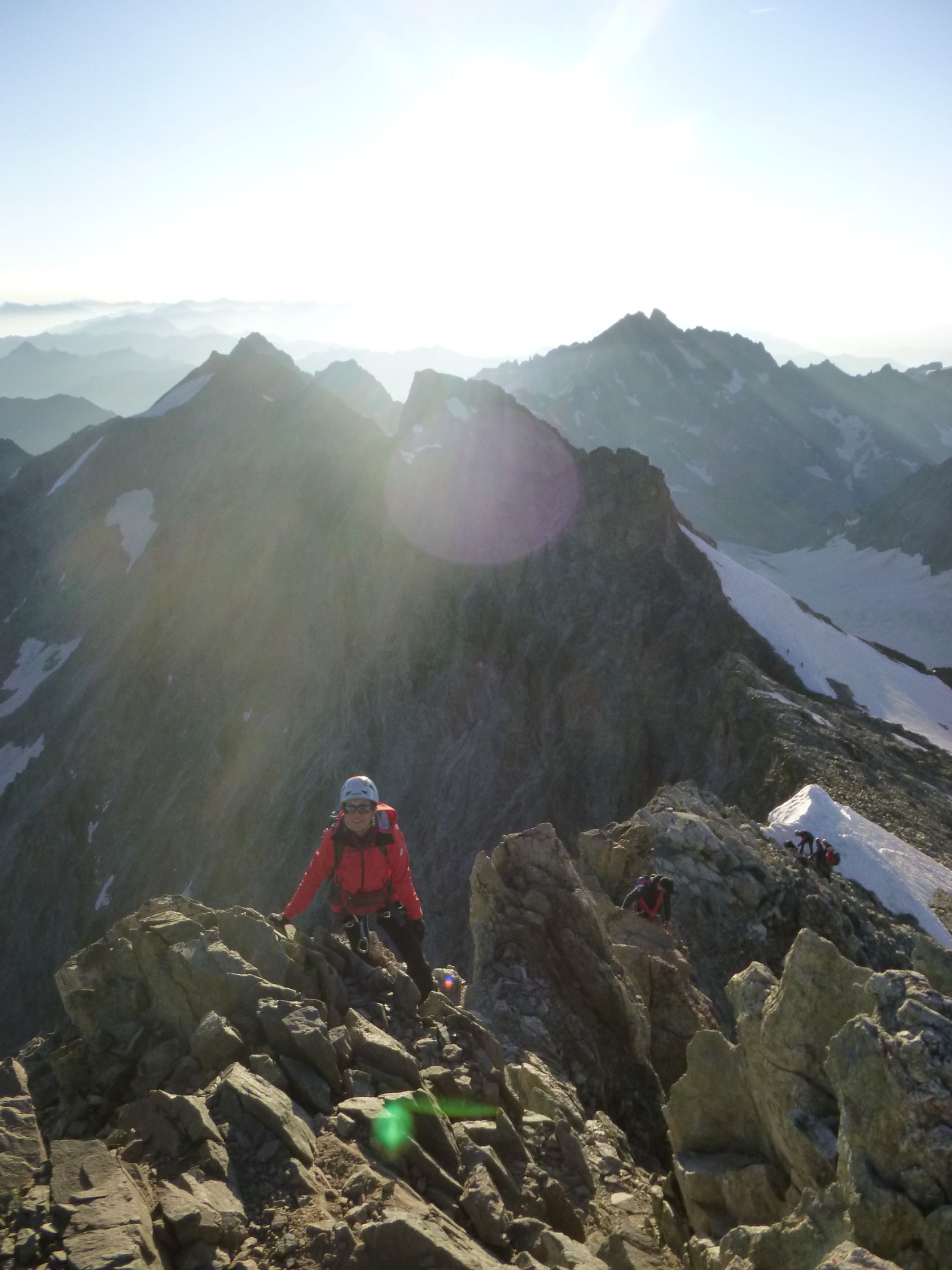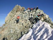 Mit uns lief ein englisches Pärchen hinauf. Wir waren früh dran, was sich bewährte. Nach uns kamen noch über 20 Personen hinauf, 2 Gruppen mit Bergführer. Nur einige kletterten über den Grat zum Hauptgipfel.