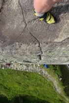 Fingerschmerz 6b In diesem Klettergarten hat es 20 Kletterrouten in den Schwierigkeitsgraden 4c bis 6b. Die Routen sind 15m bis 40m lang, und ausgezeichnet abgesichert. Die Gneisfelsen ist hervorragend, und bieten rassige Wandkletterei.
