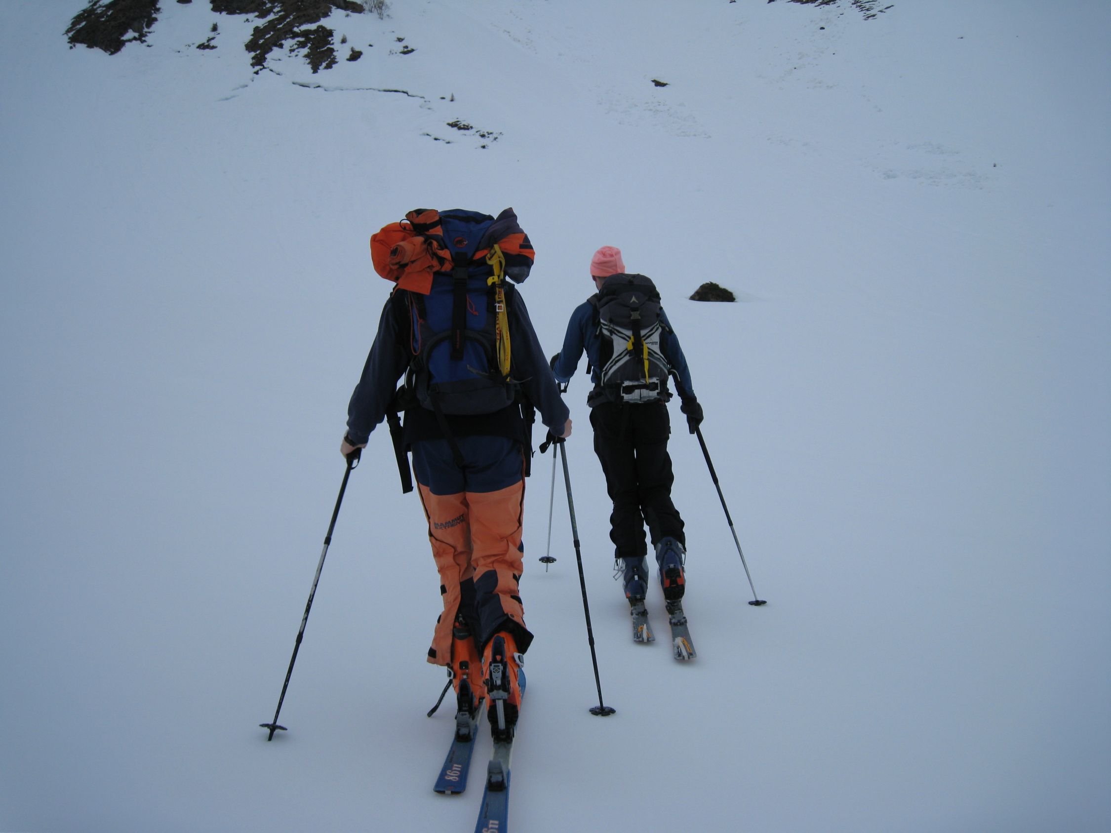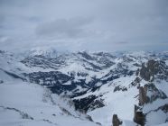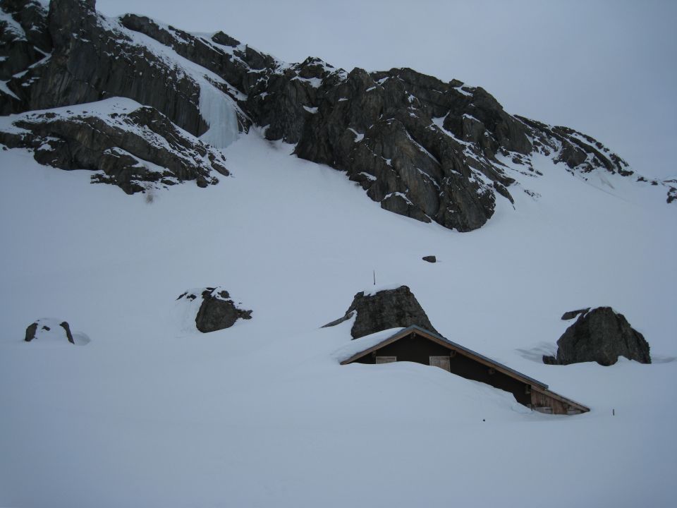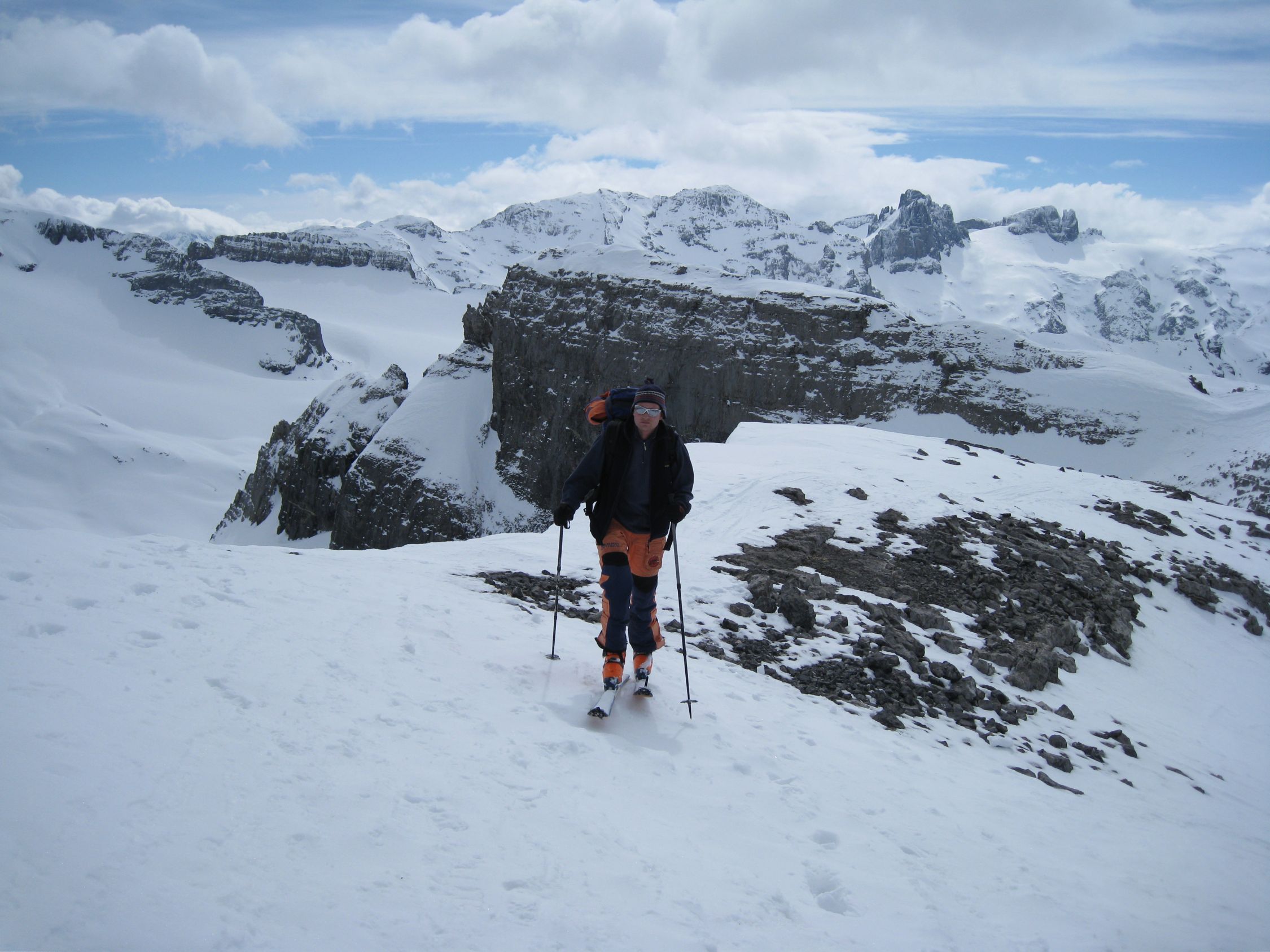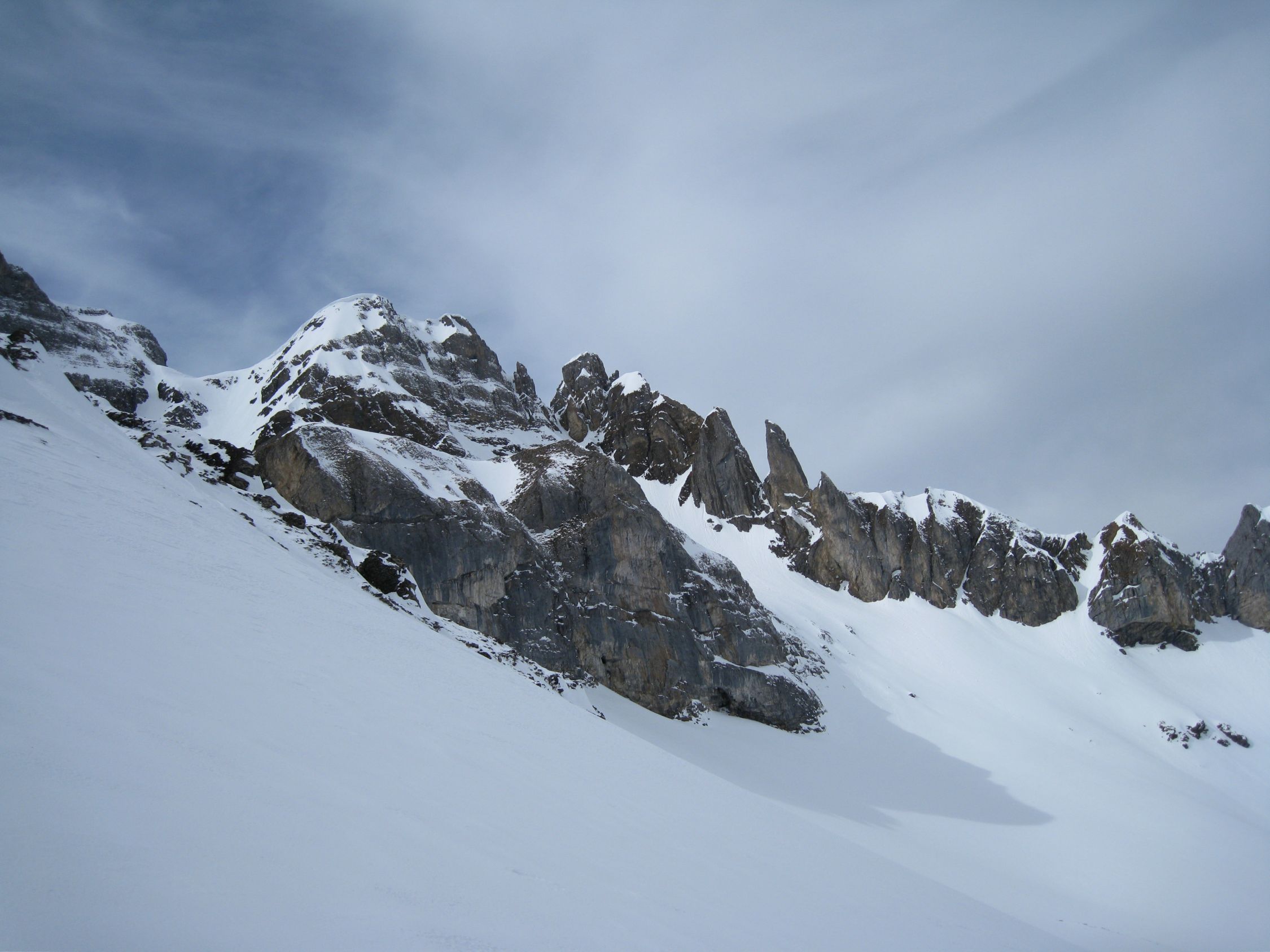 Von St.Jakob bis Alt Rüti auf tragender Schneedecke.Durch den Gatterwald nach Gossalp auf Nassschnee. In der Mulde nach Oberalp, bis unters Schoneggli auf gefrorenem Schnee. Übers Schoneggli auf pulveriger "Tschollenschnee" abwechselnd mit tragender Unterlage. Durch die Mulde bis zur Schlüsselstelle am Gipfelhang lockerer Pulverschnee. Skis ein paar Meter über einen felsdurchsetzten Aufschwung getragen, wieder montiert und weiter auf den Ruchstock Gipfel. Zaghaft setzten sich die ersten Sonnenstrahlen durch.Mächtige Föhnwalze im Süden. Auf dem Ruchstock waren heute neben uns nur noch 5 Personen. Abfahrt durchs Schöntal im oberer Teil auf schönem Sulz, weiter unten ab Oberalp, schwerer Nassschnee. Auf der Waldstrasse nach St. Jakob zurück