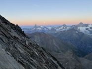 Fantastische Alternative zu den stärker begangenen Hauptrouten. Täschhütte sehr angenehm. Mit Vollmond und prächtigem Wetter ein Traumtag im Hochgebirge und zur Krönung (und nach langen Stunden mit schwerem Rucksack) ein Flug zurück auf die Täschalp. Schöne Kombination von Hochtour und Gleitschirmfliegen, sehr empfehlenswert. Allerdings ist die Route über den Rotgrat anhaltend anspruchsvoll und verlangt Ausdauer im Bergschuhklettern, je nach Verhältnissen bis ca. 5a.