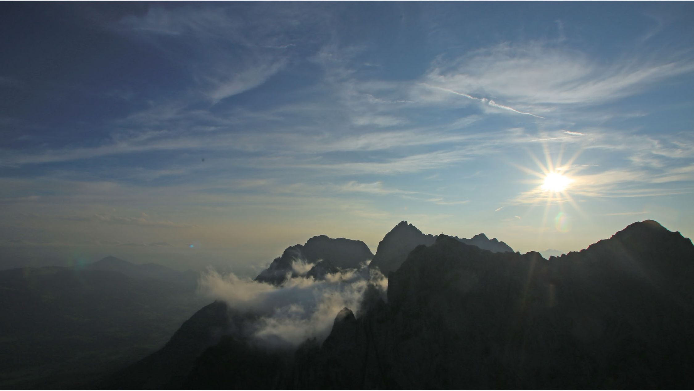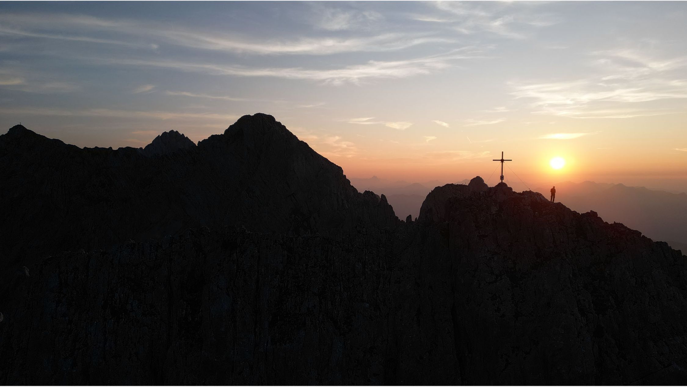 Zum Sonnenuntergang noch auf die Hintere Goinger Halt, Abstieg in der Dunkelheit.