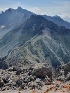 Beim zweiten Sattel, wo ich eigentlich soeben vom ersten Sattel hoch gekommen bin, musste ich somit wieder hinab, ja, und dieses mal noch tiefer als vorher, nur, damit ich später über Felsen und sandiges Geröllgelände kurz vor P2875 wieder hochsteigen konnte.