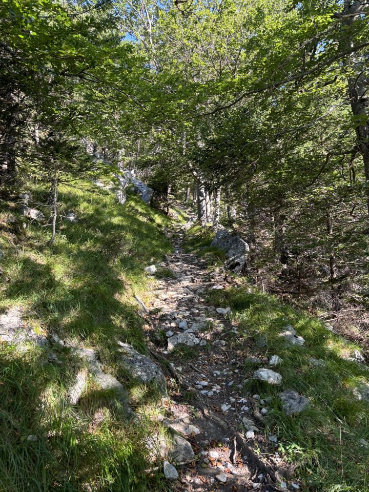 Alles trocken, was für diese anspruchsvolle Alpinwanderung mit Kraxelei auch absolut notwendig ist! Ich würde diese Route nur nach 2-3 Tagen Trockenheit angehen, da die steilen Schrofen sonst sehr gefährlich werden können.