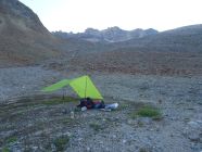 Biwak 2 am Fuss des Aufstiegs zur Fuorcla Margun. Dort hat es Wasser - sauberes untrübes Wasser.