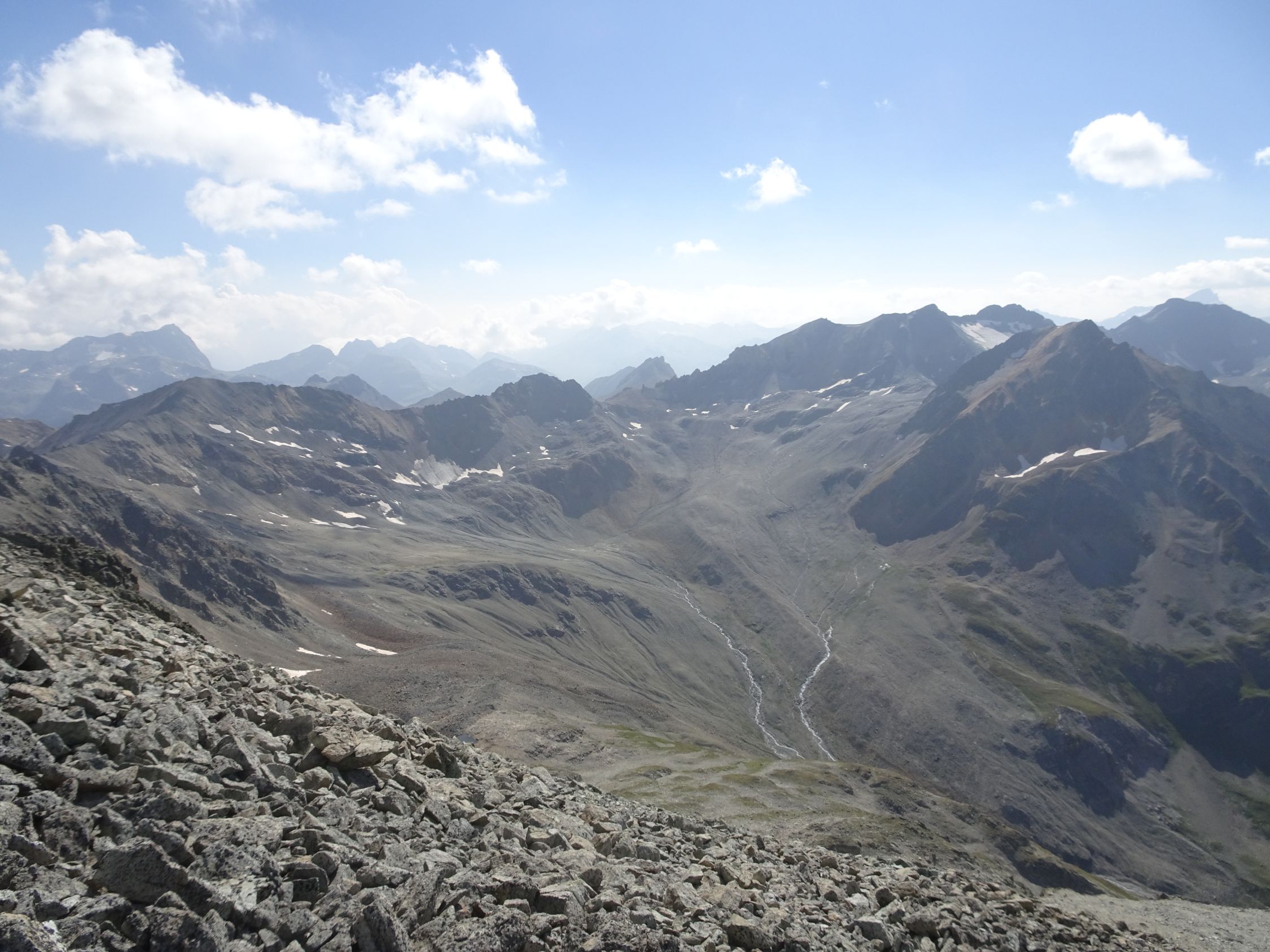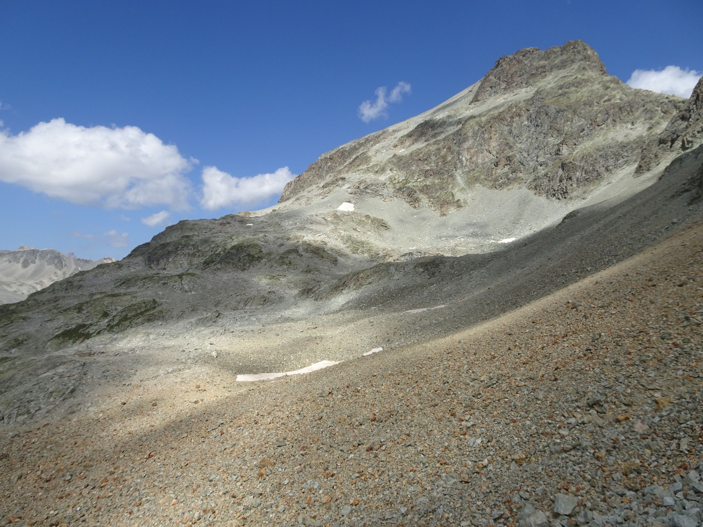 Piz Bever: Ein klassischer Winterberg. Im Sommer bedingt zum empfehlen. Eine herrliche Aussicht belohnt die mühsame Querung zum Hangfuss und die Plackerei über den Schutt nach oben. Dafür geht der Abstieg fix. Die Querung nicht zu hoch, aber auch nicht zu tief wählen. Es hat viele kleine Auf- und Abstiege.