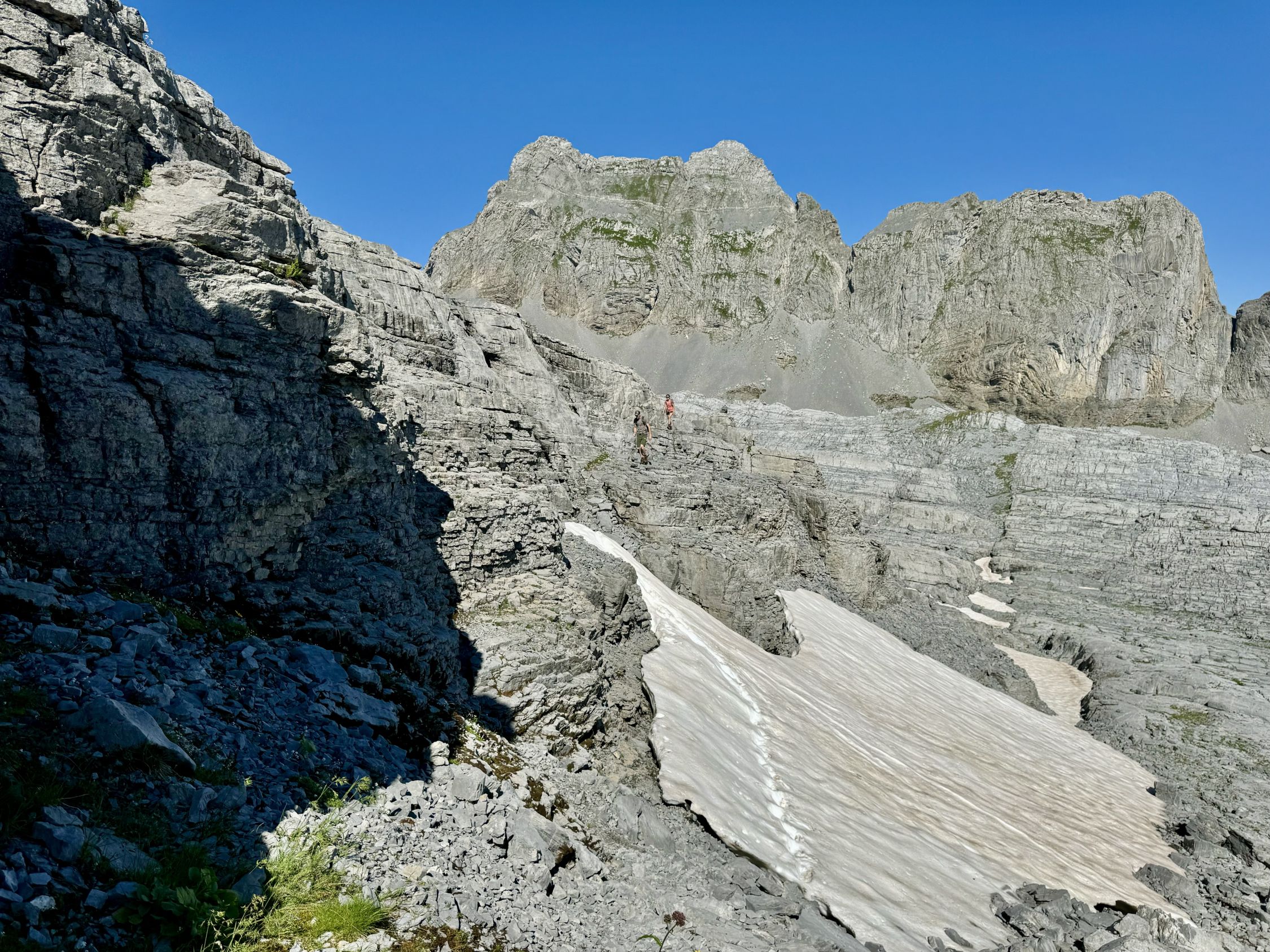nur noch vereinzelte kleine Schneefelder. Alle gut ohne Steigeisen passierbar.