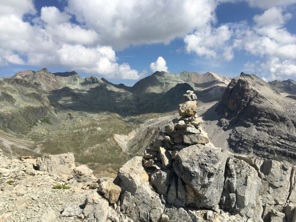 Alpine Tour auf den Nordgipfel Piz Bardella zwischen Val d‘Agnel und Vairana, T4+. Start Parkplatz Julierstrasse 8.30 Uhr, 12 Grad, windstill, perfektes Sommerwetter. Gut markierter Wanderweg bis Höhe 2625 m. danach Südwärts in der Ostflanke Nordgipfel. Bin auf der linken Seite im Aufstieg, teilweise Blöcke, teilweise bewachsen und gut zu gehen bis Ostgrat Nordgipfel. Nun steil hoch, immer mehr oder weniger dem Grat entlang, teilweise geröllig aber nicht ausgesetzt. Im oberen Teil lehnt der Berg etwas zurück und ohne Schwierigkeiten zum kleinen Gipfelplateau Nordgipfel Höhe 2815 m. Abstieg wie Aufstieg. Einsame Tour, man ist garantiert alleine!