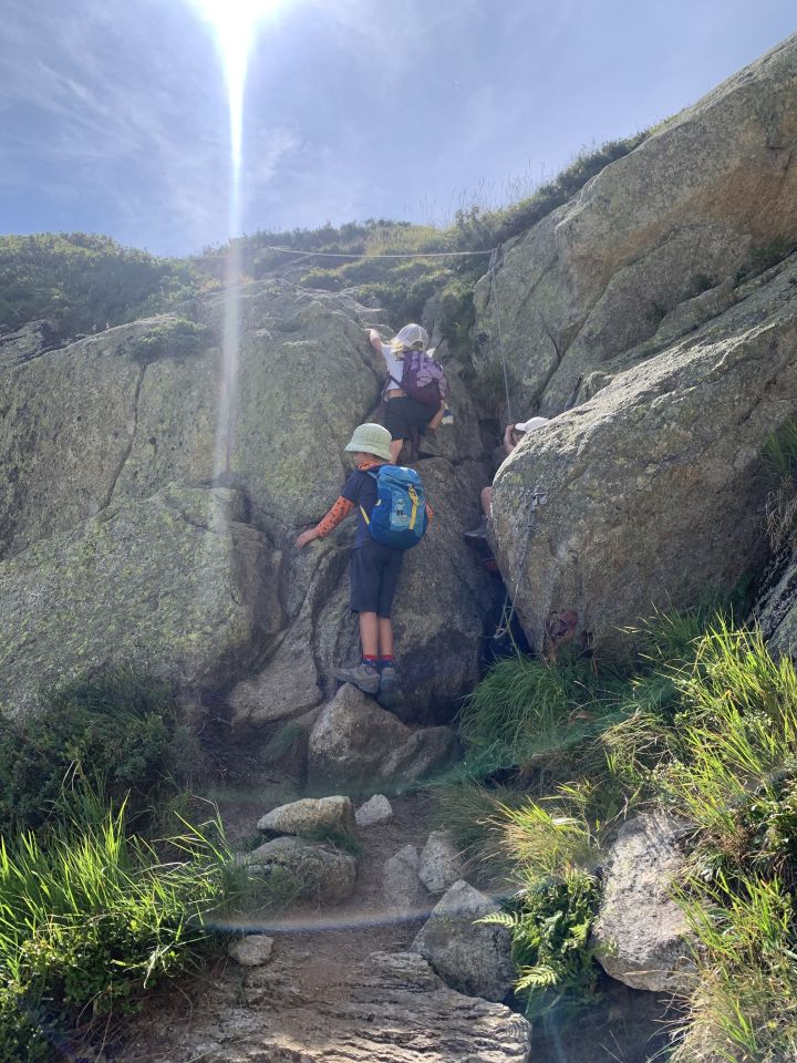 K3 Klettersteig „Jubiläeus“ dann eine Herausforderung. Für mich mit drei Kids am kurzen Seil und natürlich für die „Kurzen“. Hangelpartie zwischen dem Sicherungsseil und den Eisen, aber mit Bravour gemeistert. Die Bratwürste auf der Dammahütte waren verdient. Merci Andrine für die tolle Bewirtung, hoffe, wir sehen uns in zwei Wochen wieder.
