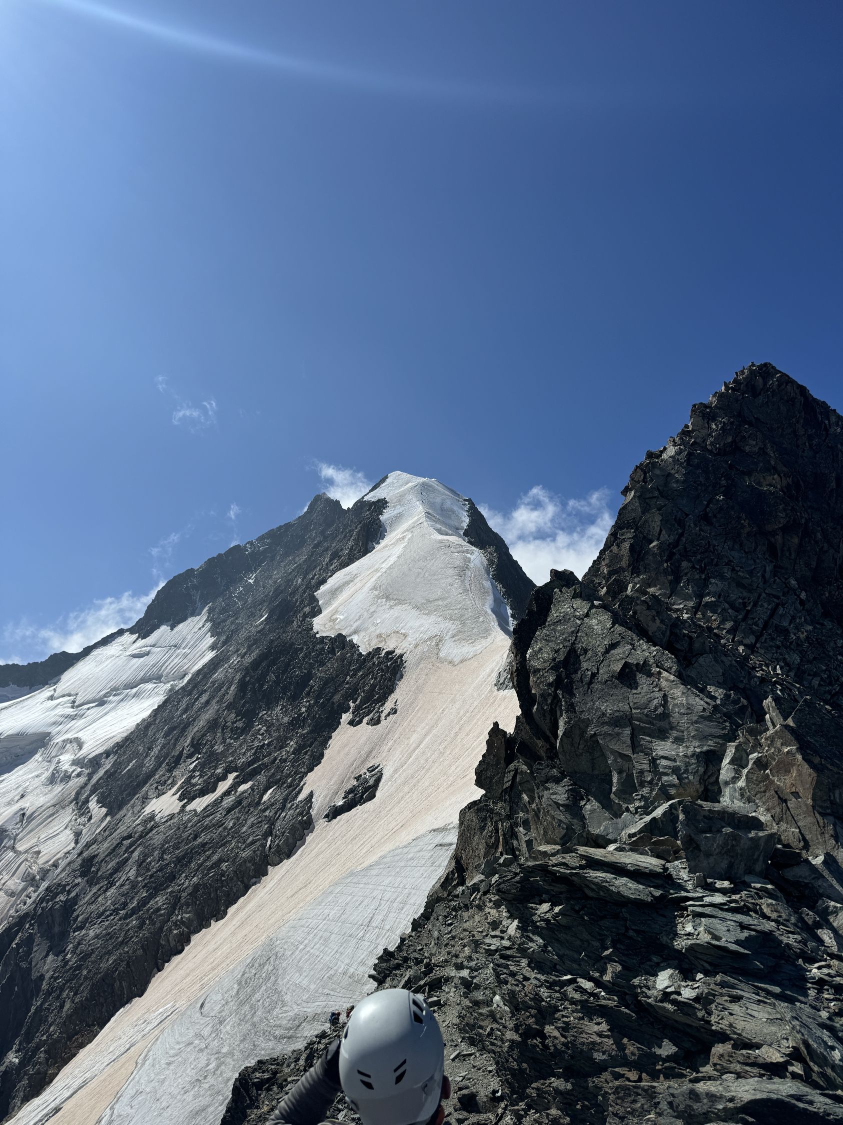 Aktuell hat es im Biancograt auf ungefähr 200m Blankeis, hier ist es empfehlenswert mit Eisschrauben zu arbeiten. Ansonsten sind die Verhältnisse gut.