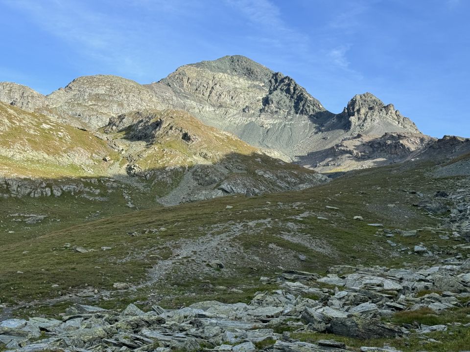 Nach Verlassen des rot-weiss markierten Bergwanderweges und Überquerung der Ebene am Foppaseeli geht es weg- und markierungslos durch das Geröllfeld. Das Ziel ist der Sattel im Südostgrad, den man vom linken oberen Rand des Geröllfeldes gut erreicht.