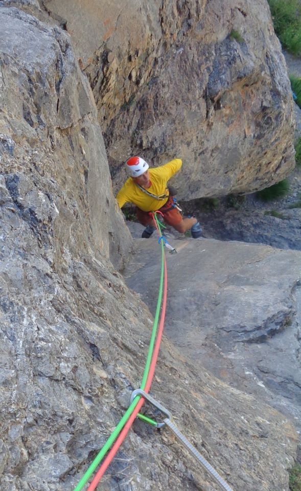 Sehr empfehlenswert sicher auch die Routen daneben (Peter Pan und Helene) und etliche Routen weiter R (schwerer). Ganz links ist noch eine schöne 6b. Noch weiter Links kommt dann der graue Pfeiler (de Contrefort). Dort sind noch 2-3 leichtere Routen (6a, anscheinend beliebt)