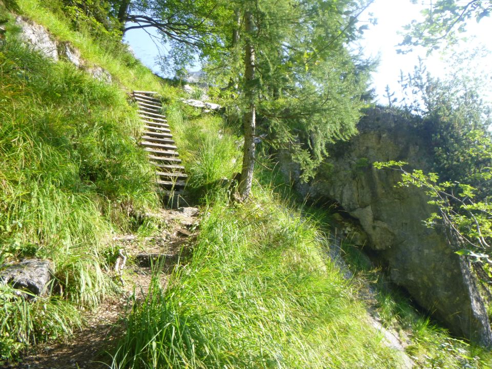 Tourenbeginn um 07:00 Uhr bei 17°C unter klarem Himmel. Im Abstieg vom Wagendrischlhorn über den kurzen Klettersteig kam mir eine große Gruppe entgegen, was kein Problem war, denn es gibt einige Felsbänder und Simse zum Ausweichen. Die Runde kann man auch in umgekehrter Runde drehen. Nur solange der 1. Bus erst um 08:15 Uhr in Hintersee losfährt in Richtung Engert-Holzstube, kommt man tagsüber in den vollen Sonnenbereich über die Route bis hinab über den Böslsteig. Insofern entschied ich mich, die Route eher zu beginnen und entgegen dem Uhrzeigersinn zu laufen. Besser den Almen-Erlebnis-Bus nach dem Abstieg zu benutzen.