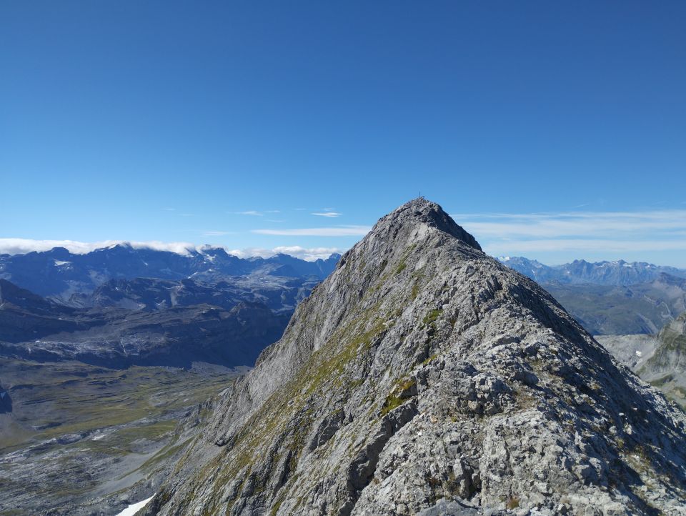 Top Verhältnisse erwischt! Steigeisen werden nicht benötigt, ein Pickel kann im Abstieg aushelfen. Die Rampe kann aktuell mit oder ohne Schneekontakt erreicht werden. Im Aufstieg habe ich mich für die Umgehung entschieden. Auf der Rampe ist vorallem im Abstieg Vorsicht geboten. Ein Ausrutscher würde fatal enden. Es hat aber Markierungen und Wegspuren und ist, wenn man langsam macht, halb so schlimm. Der Grat ist luftig, Genuss pur und der höchste Schwyzer somit auch erreicht! Steinschlag ist an diesem Berg wohl an der Tagesordnung..