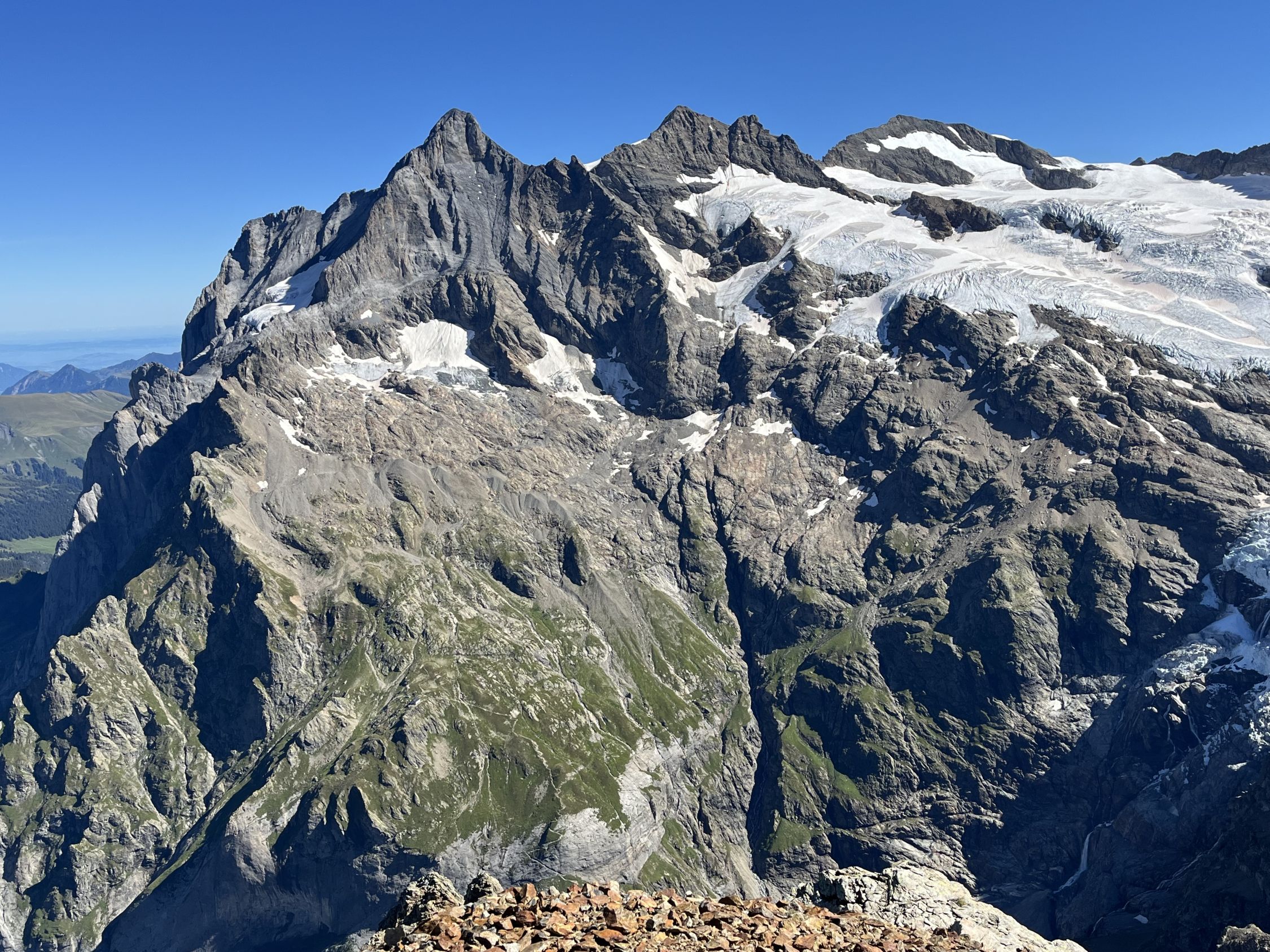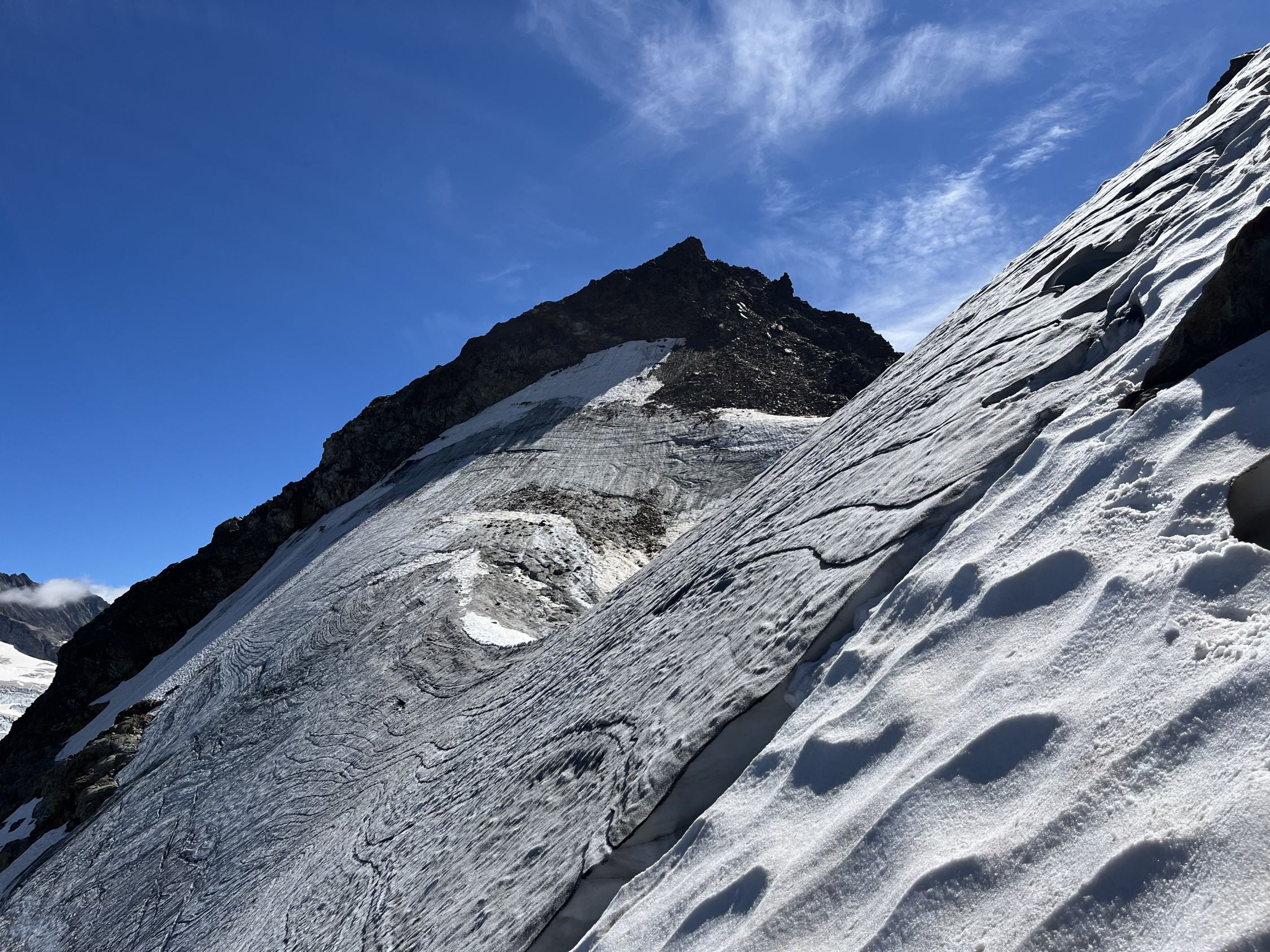 Alles bestens, aber wo es Schnee hat, ist er nun oft hart oder sogar vereist. Der steile Aufschwung vor dem Schlussaufstieg war darum zu heikel mit den Leichtsteigeisen. Besser normale Eisen mitnehmen oder bis nächstes Jahr warten.